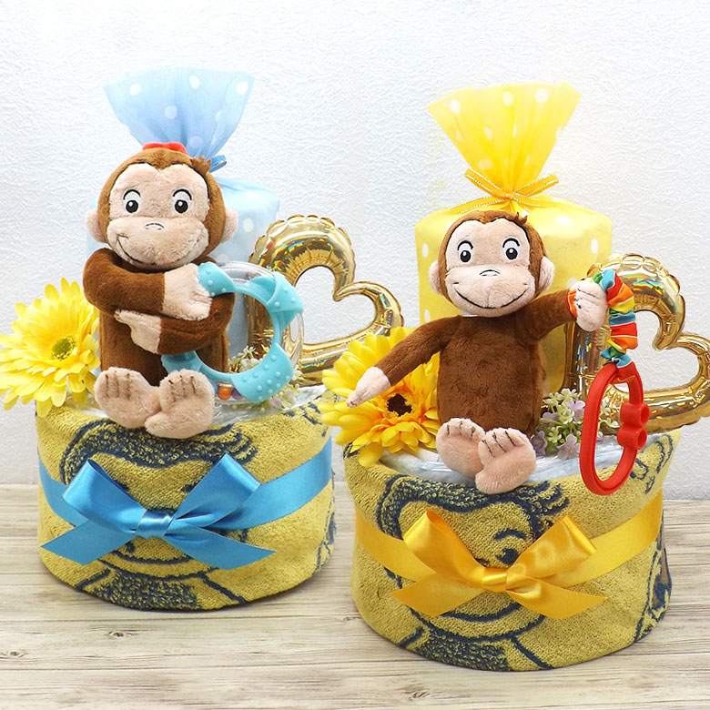 おむつケーキ おさるのジョージ 出産祝い 2段 紙おむつ アイテム2点つき