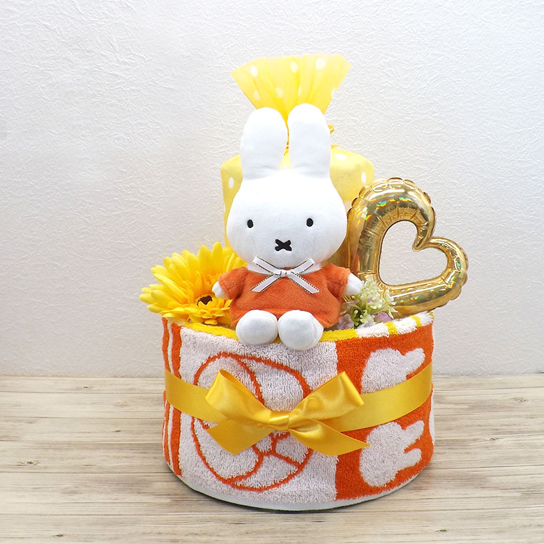 おむつケーキ ミッフィー アイテム2点つき 2段 miffy 出産祝い イエロー