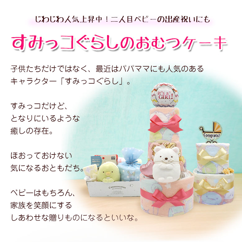 おむつケーキ オムツケーキ すみっコぐらし 3段 ぬいぐるみ タオル しろくま ぺんぎん? 男の子 女の子 男女兼用 出産祝い