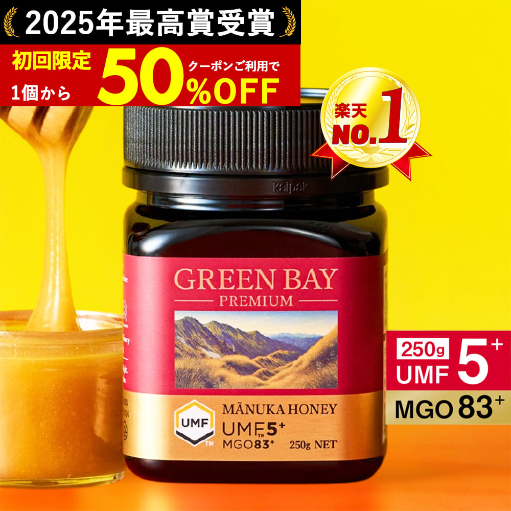 マヌカハニー UMF5+ 発がん性 不検出 グリーンベイ 無農薬 プレミアム はちみつ 送料無料 MGO83以上 非加熱 生マヌカ 250g 爆買