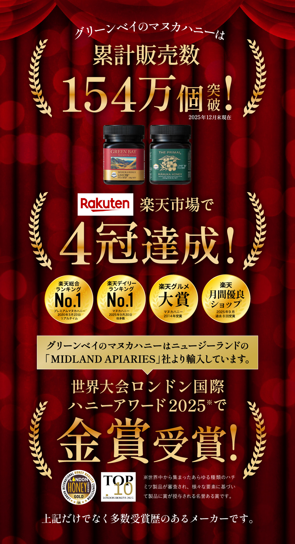 世界大会で金賞を受賞。マヌカの繁殖率が高い無農薬の環境で、養蜂を行っている100%天然のマヌカハニーです。