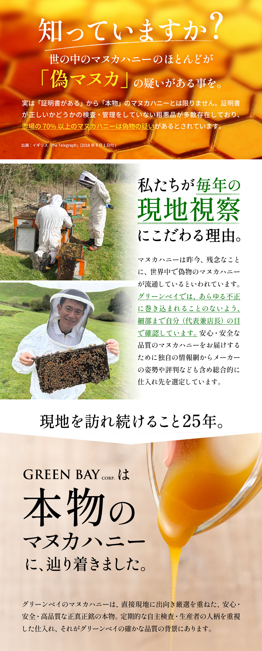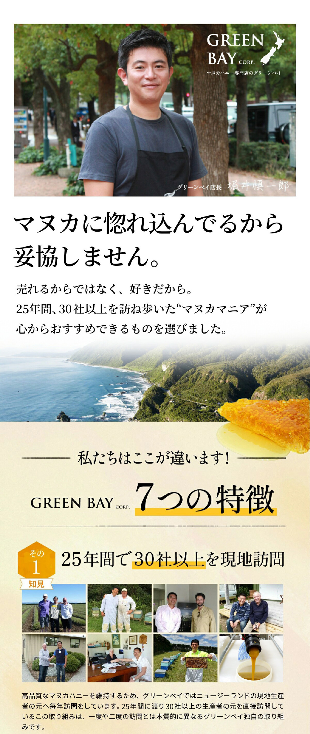当店は良質なマヌカハニーを求めて、25年間ニュージーランドの産地を訪問して厳選しました。