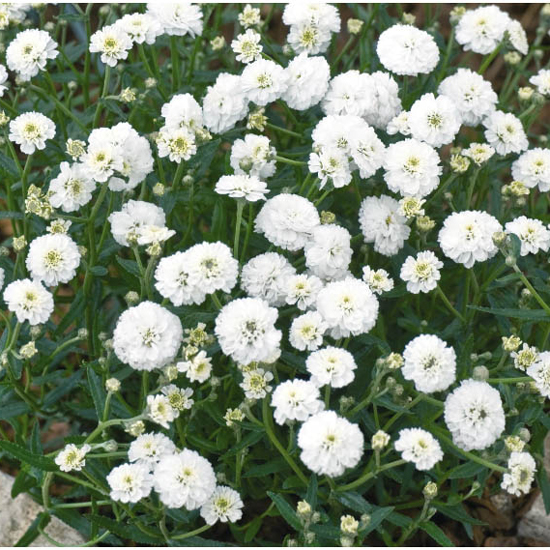 かすみ草のような八重咲きの白花を多数咲かせます。