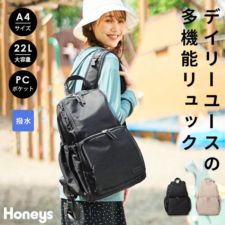 バッグ リュック 撥水 PCケース A4対応 大容量 オフィス 黒 おしゃれ 大きめ マザーズバ Honeys ハニーズ 機能性多ポケットリュック