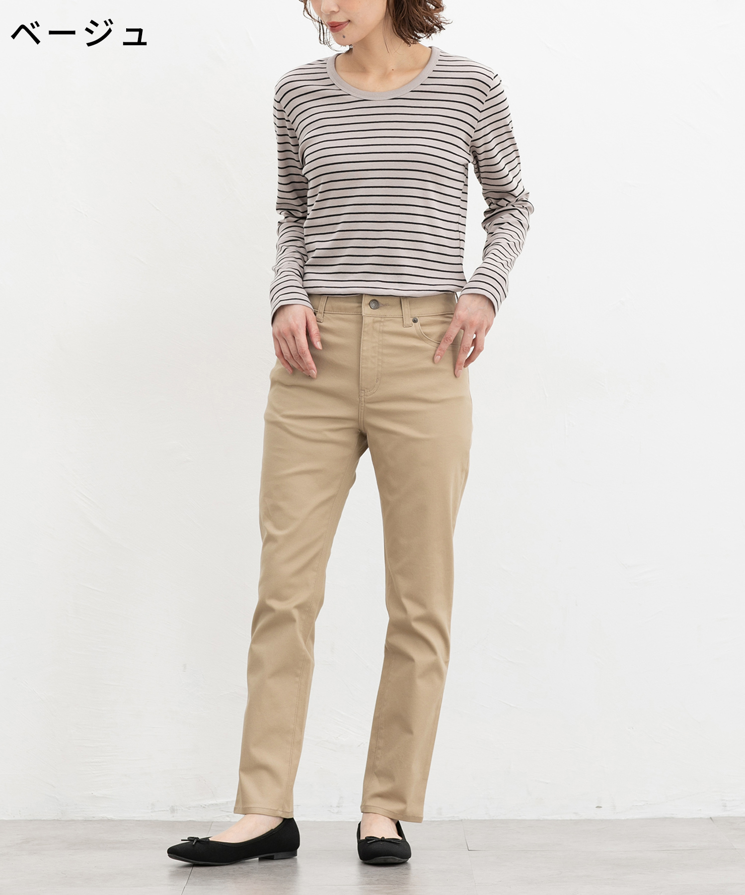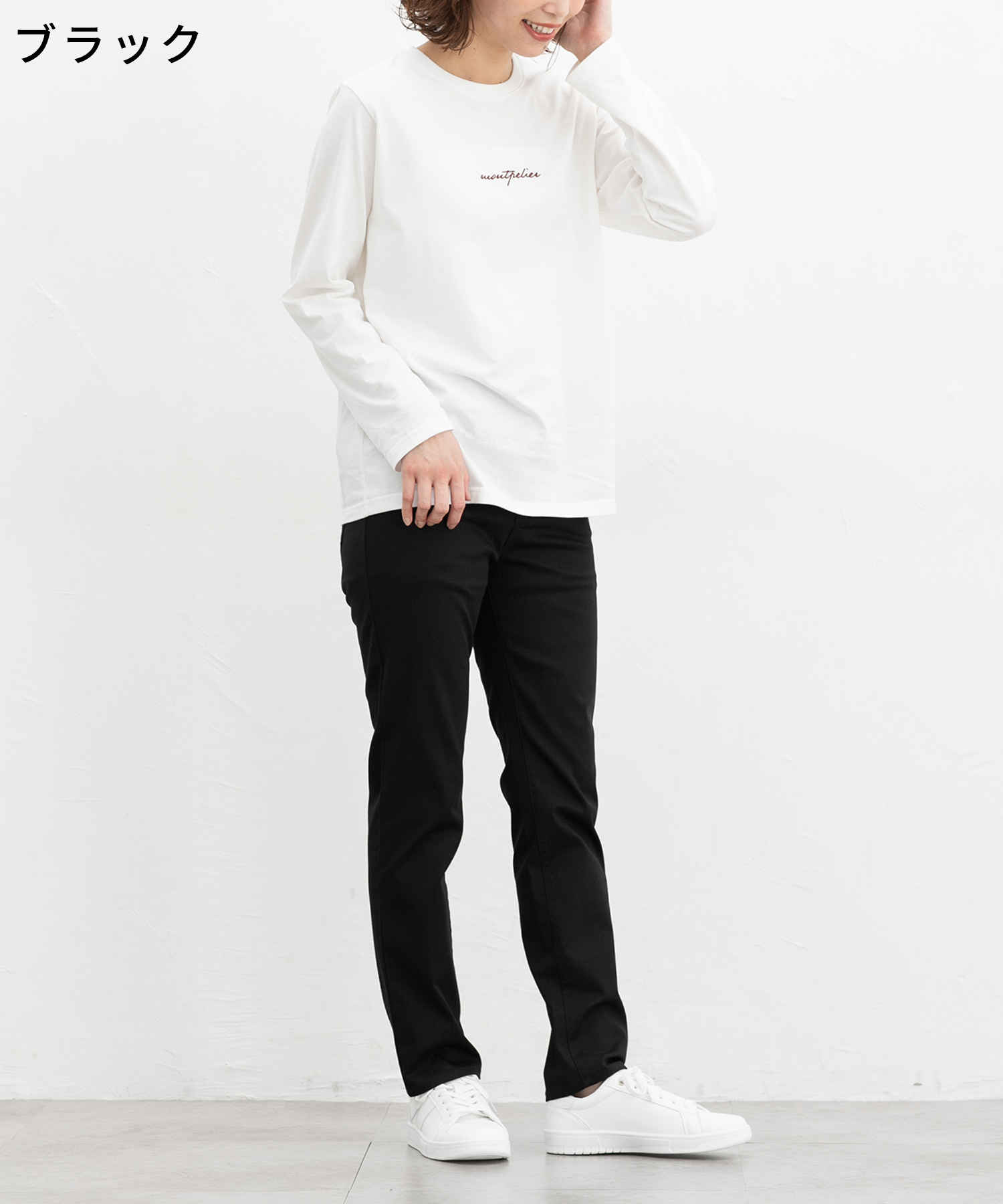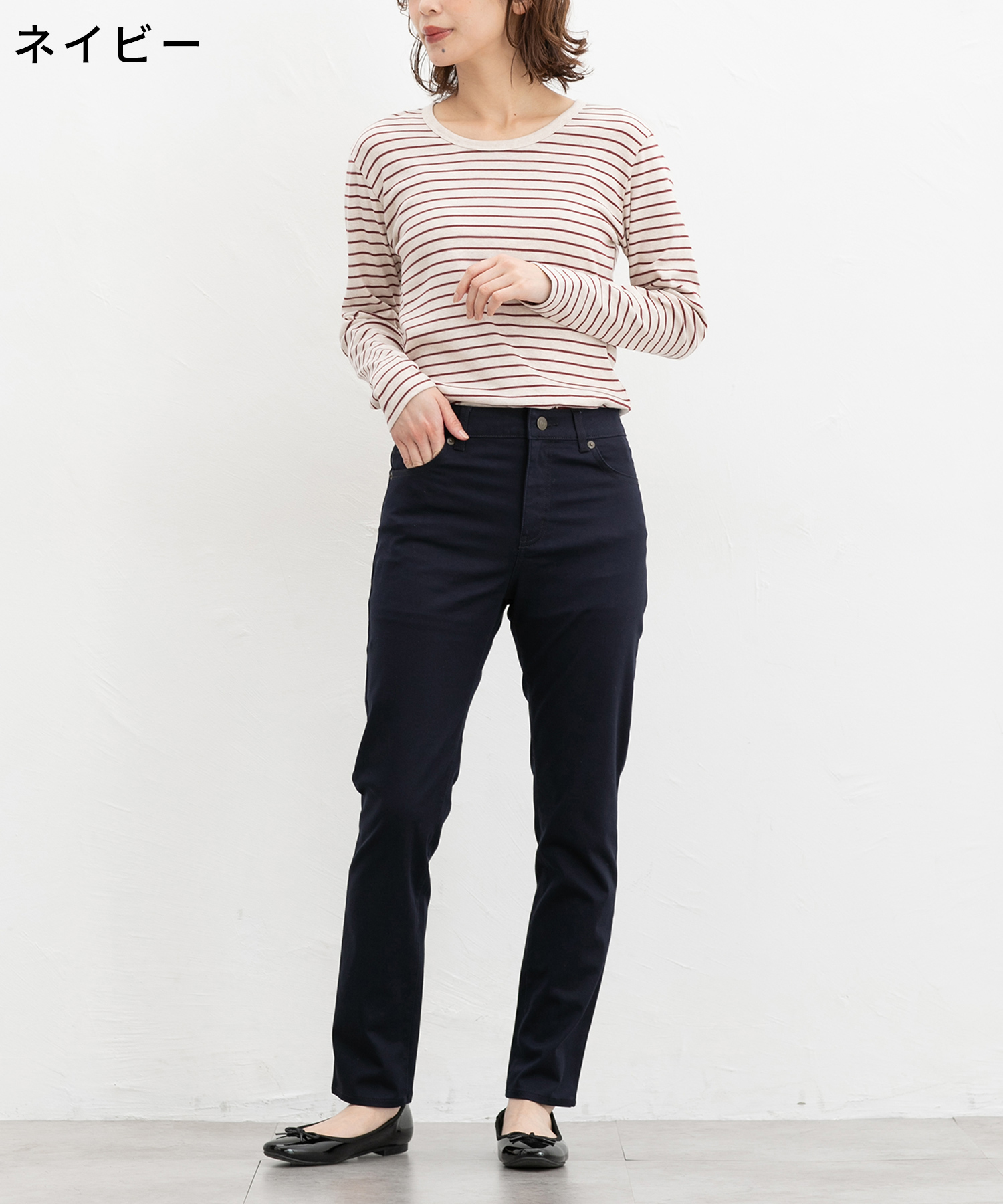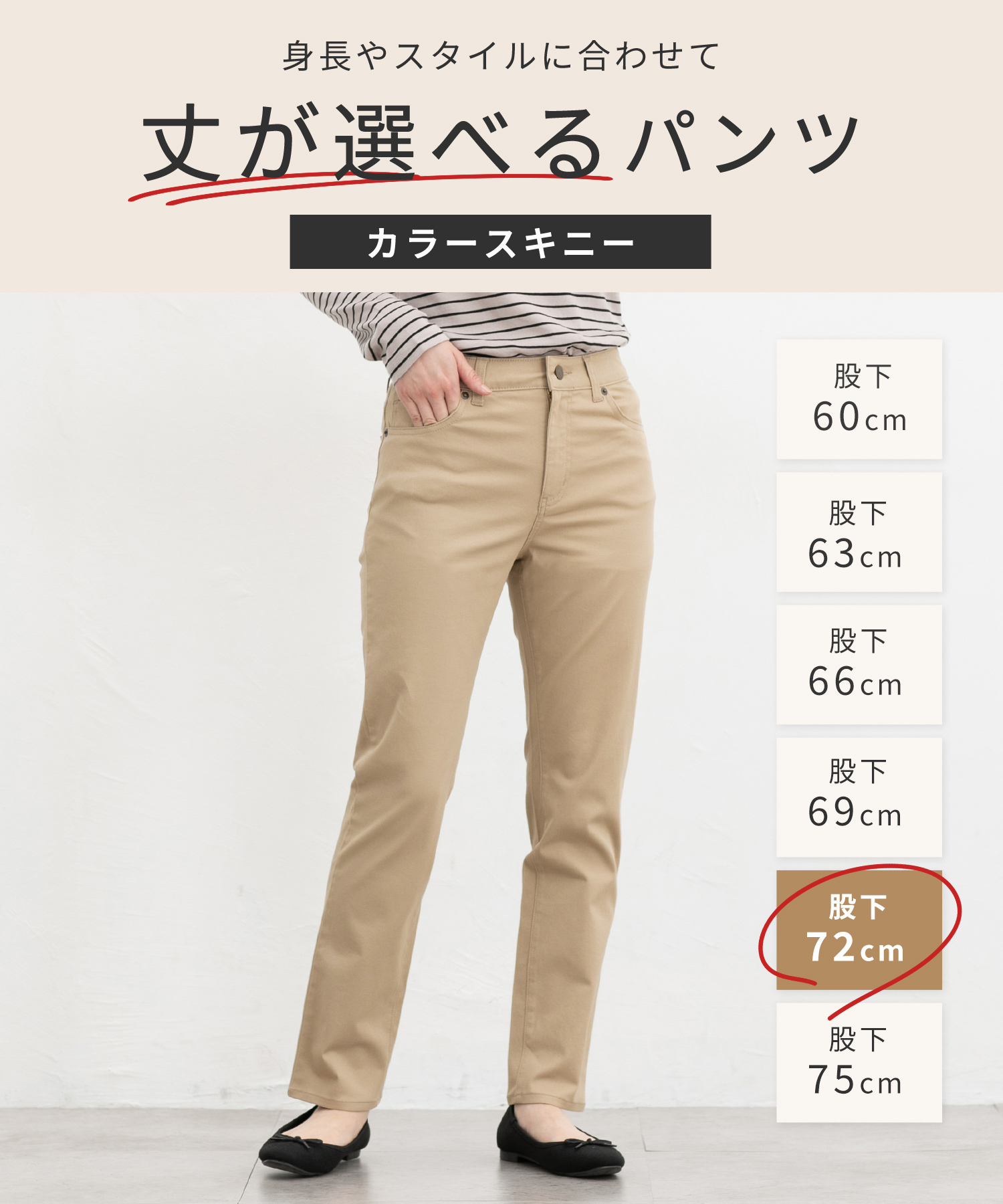 オールシーズン着用可能な定番カラースキニー、股下72cmタイプ。