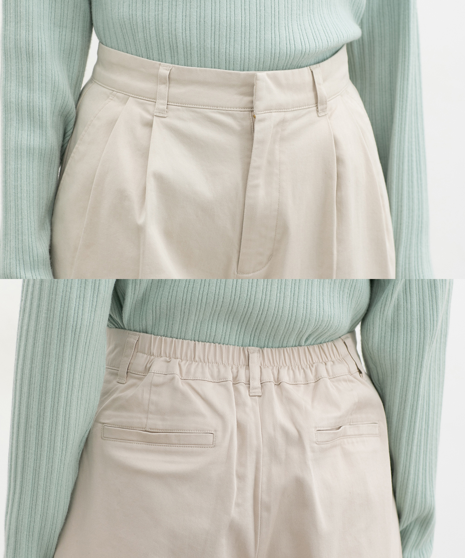 ストレッチ生地と後ろウエストゴムで、はき心地抜群。