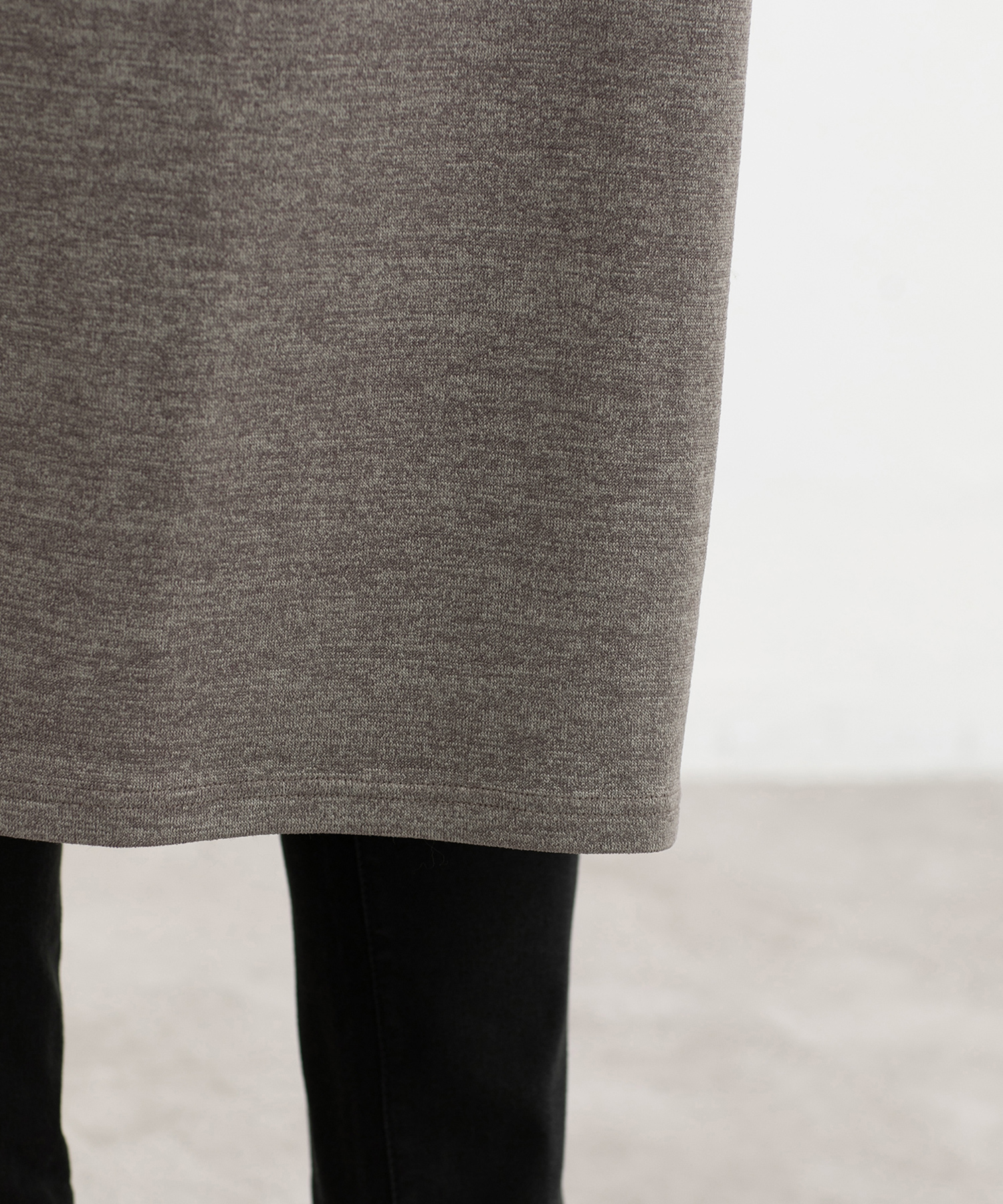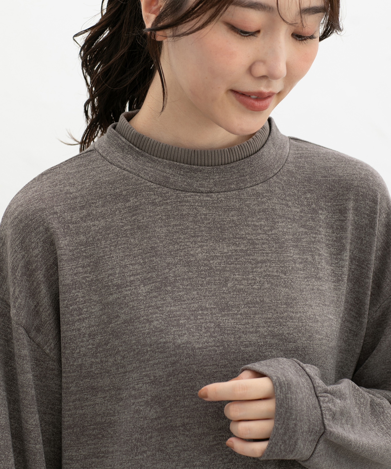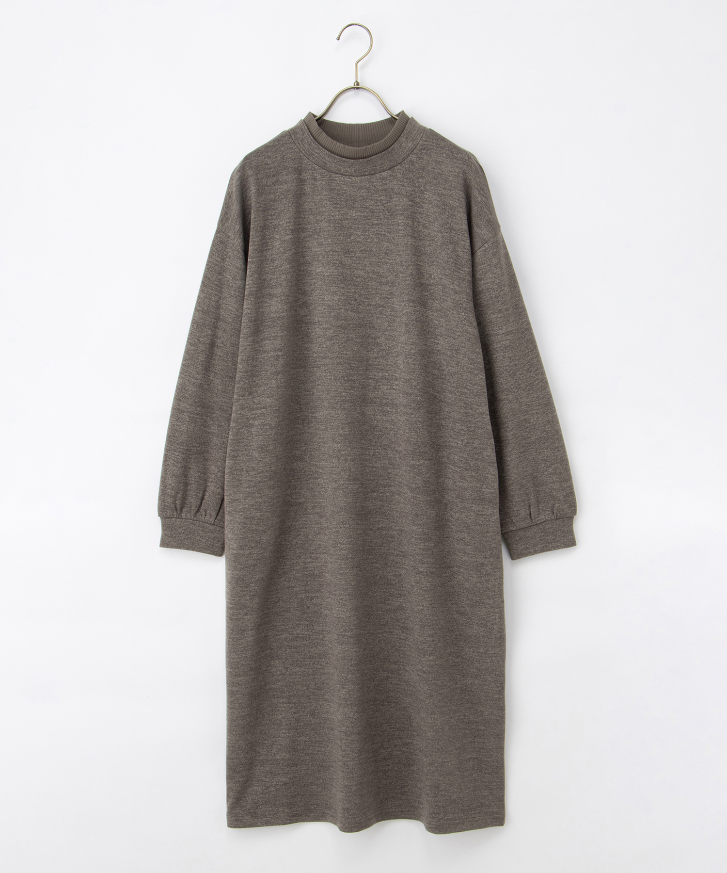 レイヤード風のハイネックがさりげなくお洒落なシンプルデザイン。
