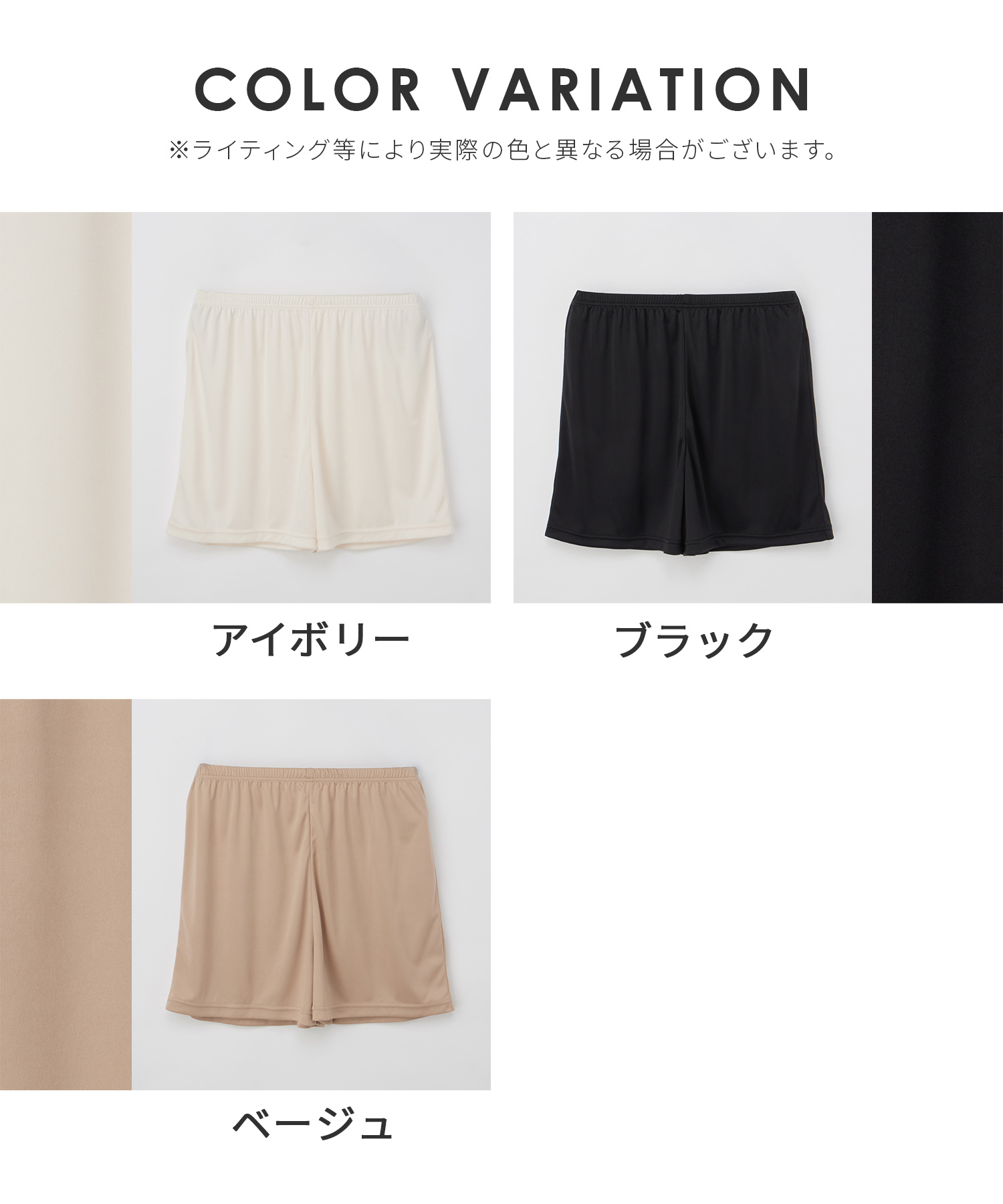 透けが気になるワンピースやスカートのインナーとして、どんなコーデにも合わせやすいベーシックカラーのシンプルな無地デザイン。
