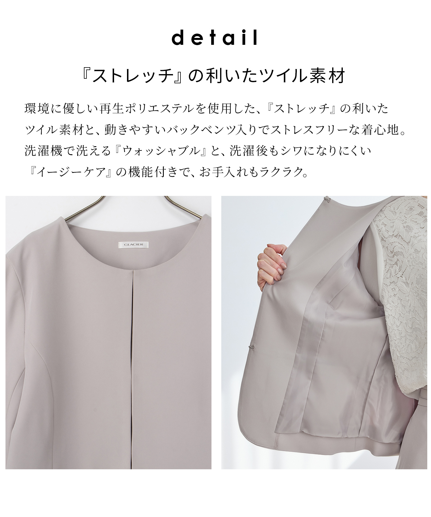 商品カテゴリ:6730418487 アウター セットアップ ウォッシャブル 大きいサイズ オフィス きれいめ ジャケット ノーカラージャケット セレモニー イージーケア シワになりにくい 美ージー 再生ポリエステル ストレッチ ツイル素材 裏地付き 無地 フォーマル オールシーズン 黒 カテゴリ401000 outer jacket 上着 セット セットアイテム 洗える 洗濯機 簡単 機能素材 XLサイズ 3Lサイズ XL 3L FP502 おしゃれ オフィスカジュアル 通勤 通勤スタイル 通勤服 大人女子 きれいめカジュアル きちんと服 オフィス服 会社 オフィススタイル かっちり 清潔感 コンサバ 上品 大人 20代 30代 40代 アラサー OL トレンド 流行 ノーカラー 衿なし カラーレス フォーマルジャケット 二次会 オケージョン お呼ばれ きちんと感 パーティー ハレの日コーデ ハレの日スタイル マザーニーズ ママ 華やか 晴れの日 卒園式 卒業式 同窓会 入園式 入学式 発表会 セットジャケット セットアウター シワ リサイクル 再生ポリ 環境保護 サスティナブル サステナブル エコ ツイル 裏地 透けない 裏地あり