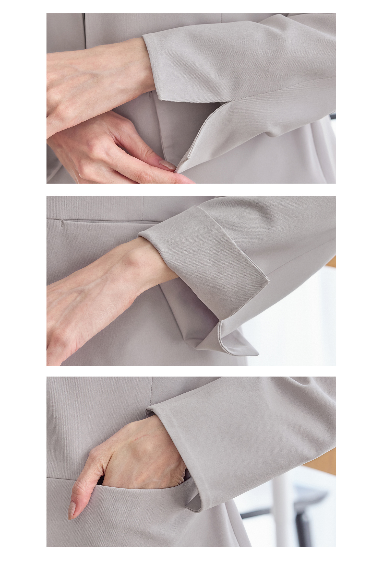 袖口は、動きやすく、そのままでもターンバックしてもこなれたアクセントになるスリット入り。