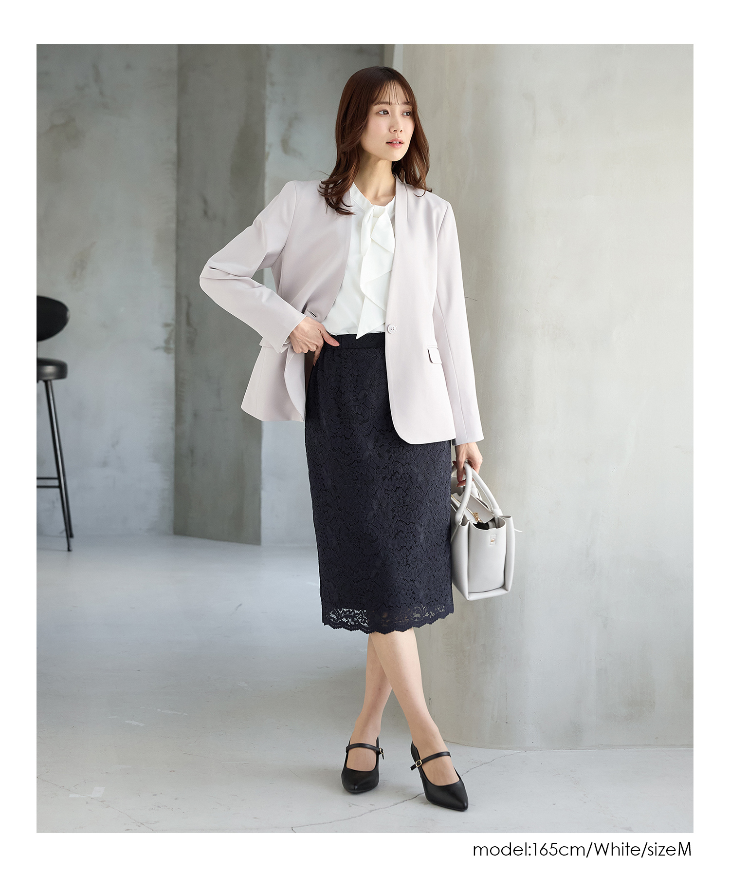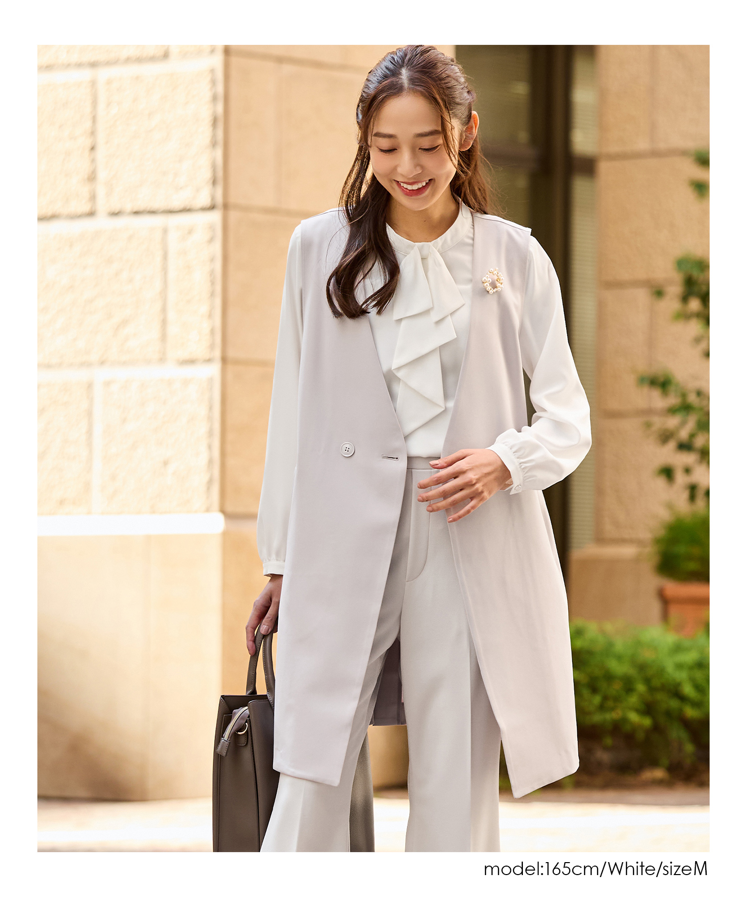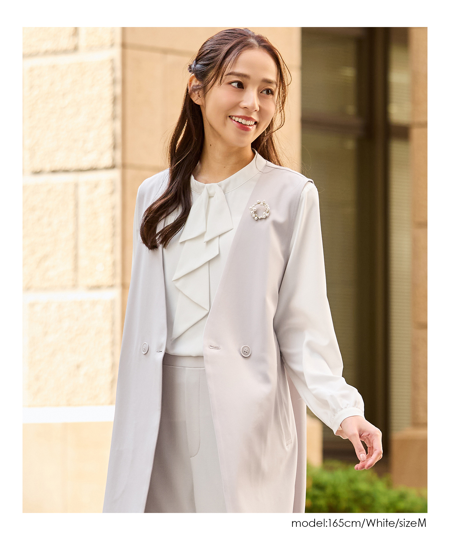 ジャケットにも合うサイズ感で、フレアスカートやテーパードパンツと合わせたきれいめお仕事スタイルに大活躍。