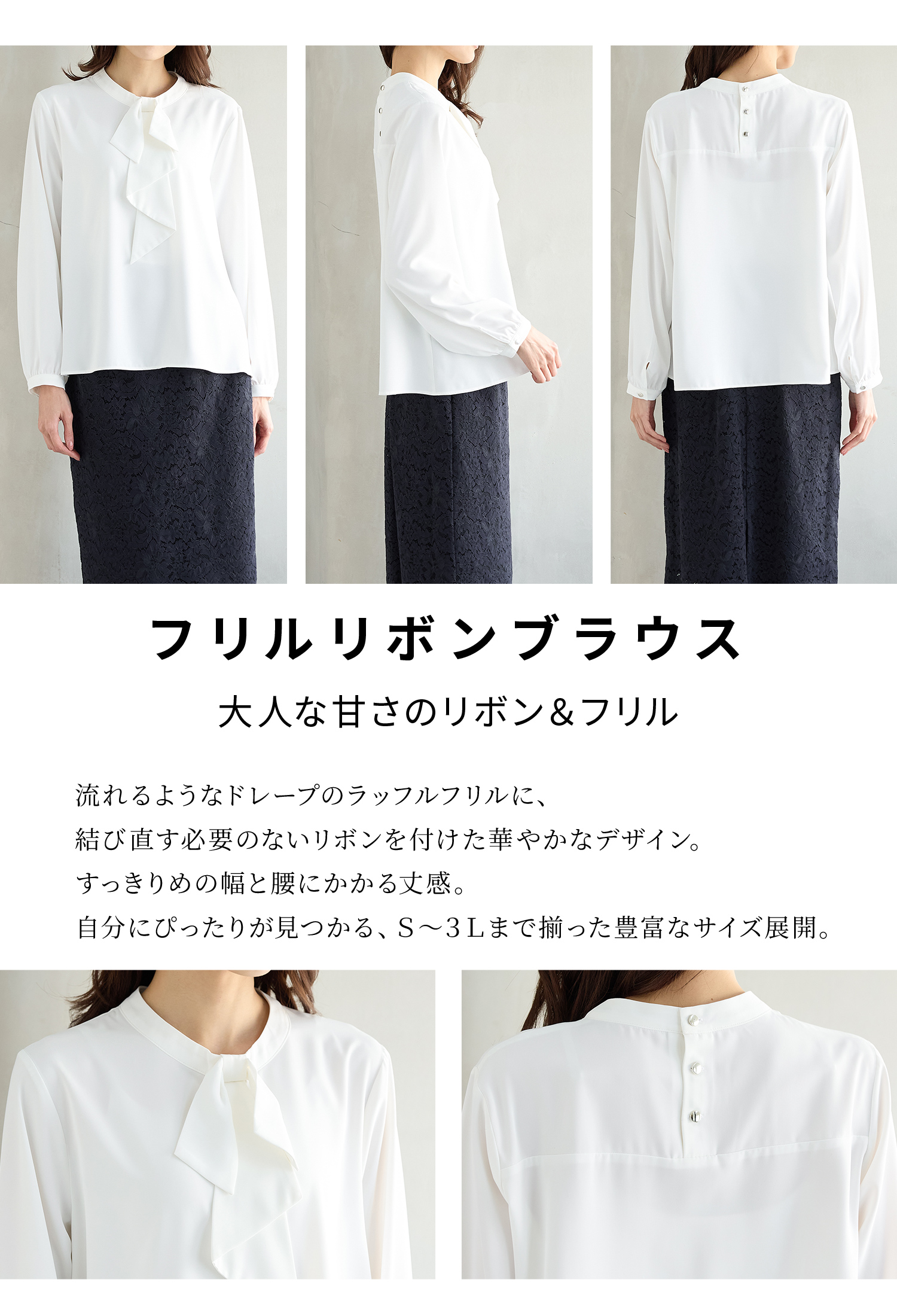 商品カテゴリ:6730610127 トップス ブラウス 長袖 大きいサイズ オフィス きれいめ 再生ポリエステル フリル リボン 無地 水玉柄 変わり織り フェミニン オールシーズン 白 黒 カテゴリ105010 tops ブラウス長袖 長そで XLサイズ 3Lサイズ XL 3L FP502 おしゃれ オフィスカジュアル 通勤 通勤スタイル 通勤服 大人女子 きれいめカジュアル きちんと服 オフィス服 会社 オフィススタイル かっちり 清潔感 コンサバ 上品 大人 20代 30代 40代 アラサー OL トレンド 流行 リサイクル 再生ポリ 環境保護 サスティナブル サステナブル エコ ヒラヒラ ドレープ ラッフルフリル 無地ブラウス ドット柄 水玉柄ブラウス ドット柄ブラウス 滑らか なめらか 落ち感 可愛い 清楚 大人可愛い タグ再生ポリエステル Sサイズ S 小さいサイズ Mサイズ Lサイズ LLサイズ LL シーズンオール 春 春物 春服 春夏 夏 夏物 夏服 秋 秋物 秋服 秋冬 冬 冬物 冬服 新作 新着 ホワイト ベージュ 肌色 ピンク 桃色 ピンクベージュ オフ オフホワイト アイボリー オフ水玉 ブラック クロ