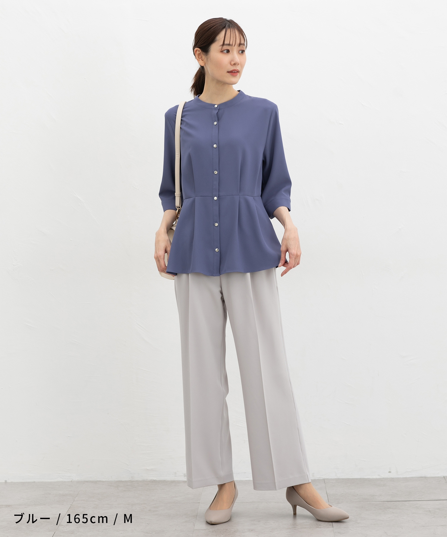 ジャケットにも合うサイズ感で、テーパードパンツやフレアスカート、ナロースカートなどと合わせたきれいめお仕事スタイルに大活躍。