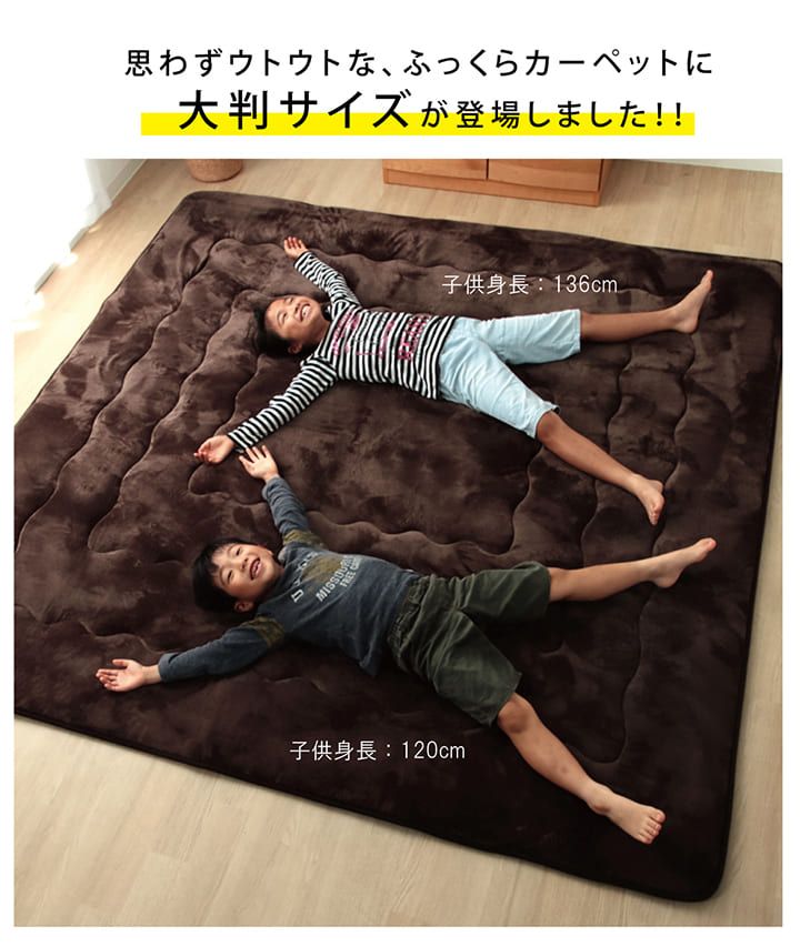 | こたつ布団でごろんと横になりゆっくり過ごしたい方にお勧めのこたつ布団敷きです。通常よりも30cmほど大きくすることでこたつ布団に入ったままごろんと横になっても体がはみ出にくい大きさにしました。中綿には固綿を30mm使用し、ふっくらとしたボリュームを、表地には滑らかなタッチ感のフランネルを使用することでゆったりこたつライフをお楽しみいただけます。 |