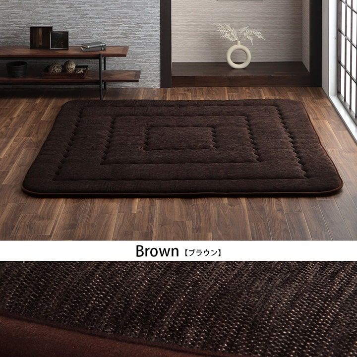 | "厚さ約40mmのボリュームタイプのカーペット。中材にはクッション性にこだわった国産固綿を使用。十分な弾力性があるので底つき感もなくフローリングでのご使用にも最適です。遮音等級はΔLL(I)-9 を取得しており、床下への騒音も軽減します。表地には撥水加工を施しているため、飲み物などをこぼしてもさっと拭き取れて安心です。こたつと併用するとこたつの熱を床下へ逃しにくくなるので省エネ効果もあります。遊び毛がでにくいシェニール糸を使用しているため、お手入れもしやすい。※ 掲載写真は表記サイズと異なる場合がございます。 |