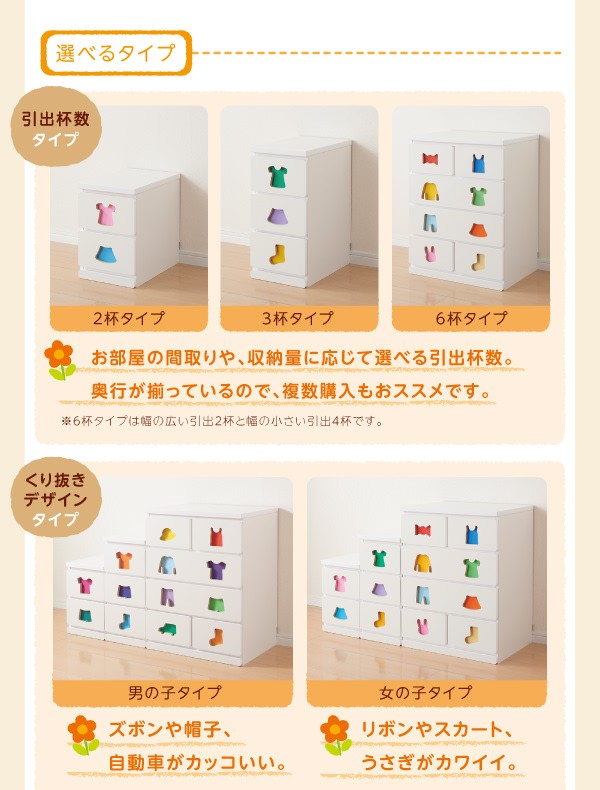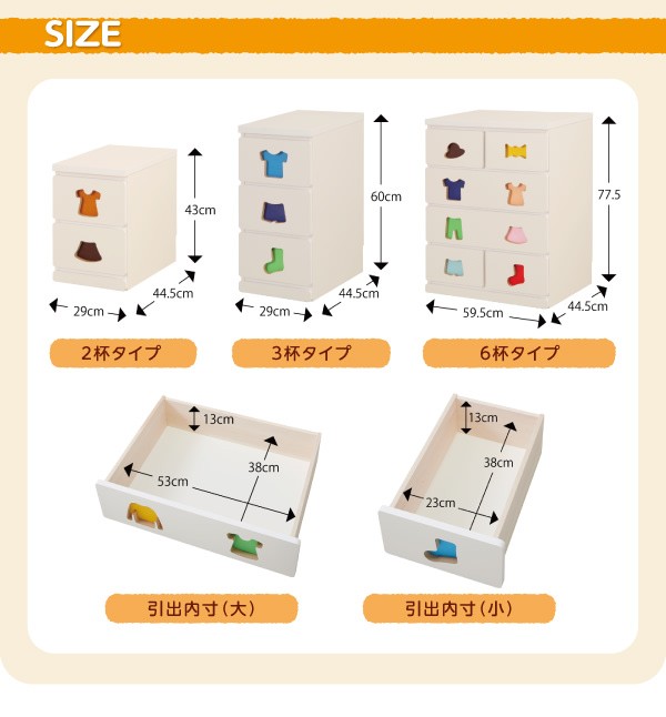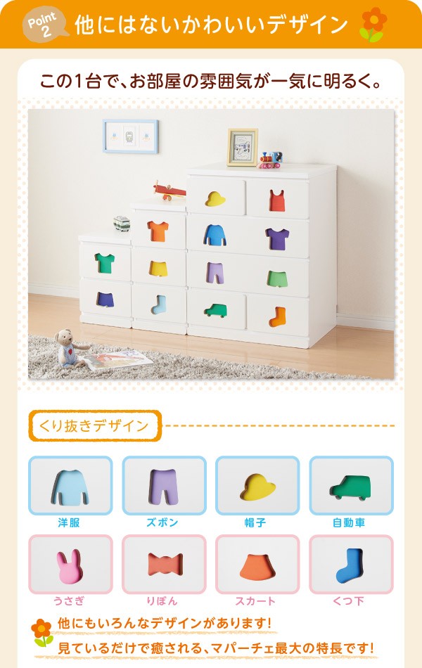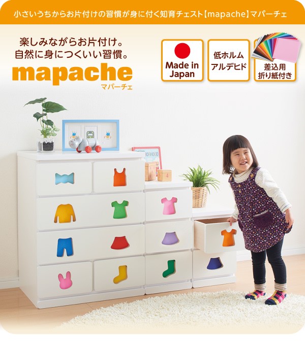 小さいうちからお片付けの習慣が身に付く知育チェスト mapache マパーチェ 2杯タイプ 女の子向け