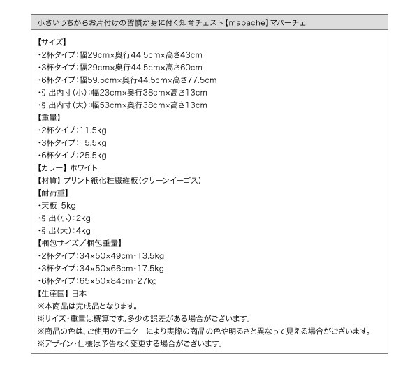 小さいうちからお片付けの習慣が身に付く知育チェスト mapache マパーチェ 2杯タイプ 女の子向け[00]