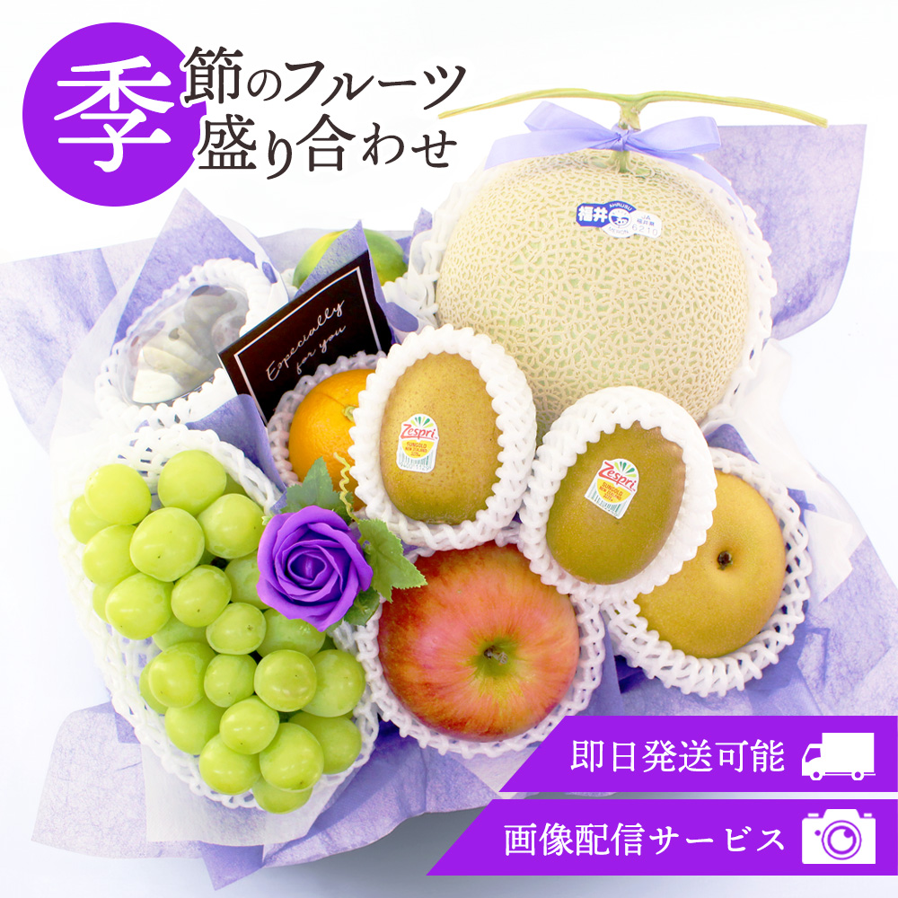 フルーツギフト フルーツ 果物 盛り合わせ 画像配信 即日発送 花 ソープフラワー セット お供え お悔み 御供 法事 法要 供物 49日[季節のフルーツ盛り合わせ03]
