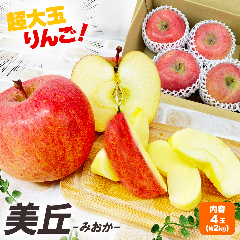 青森県産 超大玉りんご 美丘 4玉入 約 2kg以上 ケース 箱売り リンゴ 林檎 訳あり 訳アリ ご家庭用 ご自宅用 送料無料 【BO】[美丘 4玉]
