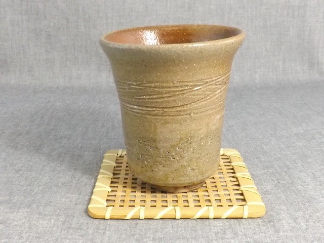 A-13 焼締 麦酒杯 ビアカップ 文部大臣奨励賞受賞作家 荒川明作 木箱付き