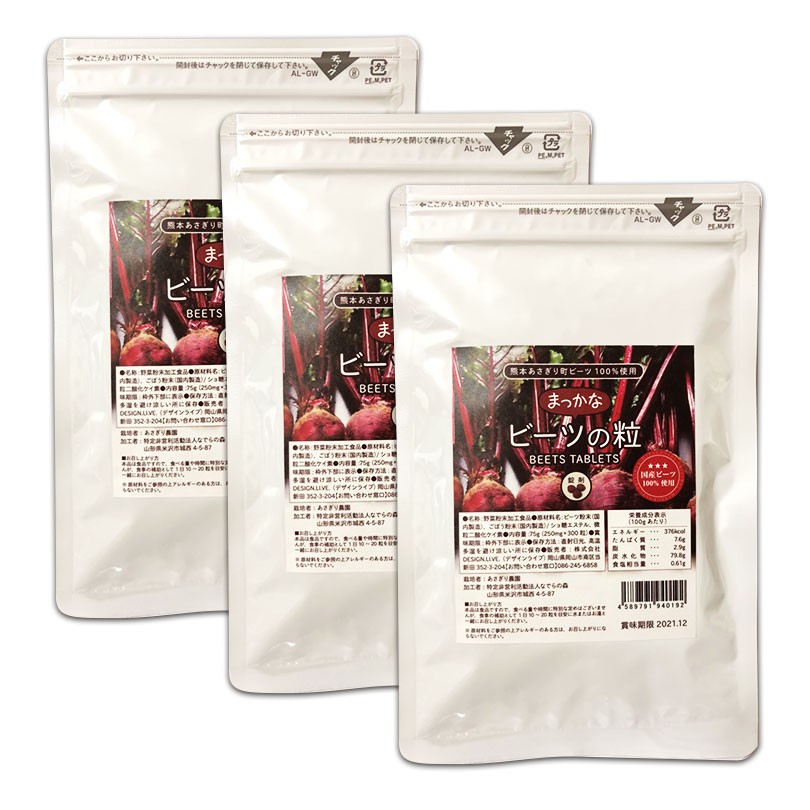 ビーツ サプリ サプリメント 粒 国産 タブレット 熊本県 あさぎり町産 無添加 国産まっかなビーツの粒 300粒入り×3袋セット 送料無料 スーパーフード 腸活