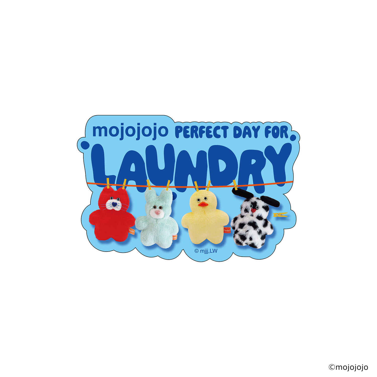 mojojojoステーショナリーシリーズ第2弾!今回は“ぬいぐるみ”とも親和性のある『LAUNDRY(洗濯)』がテーマのオリジナルデザイン。mojojojoでも人気の高い”Todd friends”が洗濯したり・されたり、かわいい洋服や小物を身に付けたり、ポップで楽しいデザイン★
