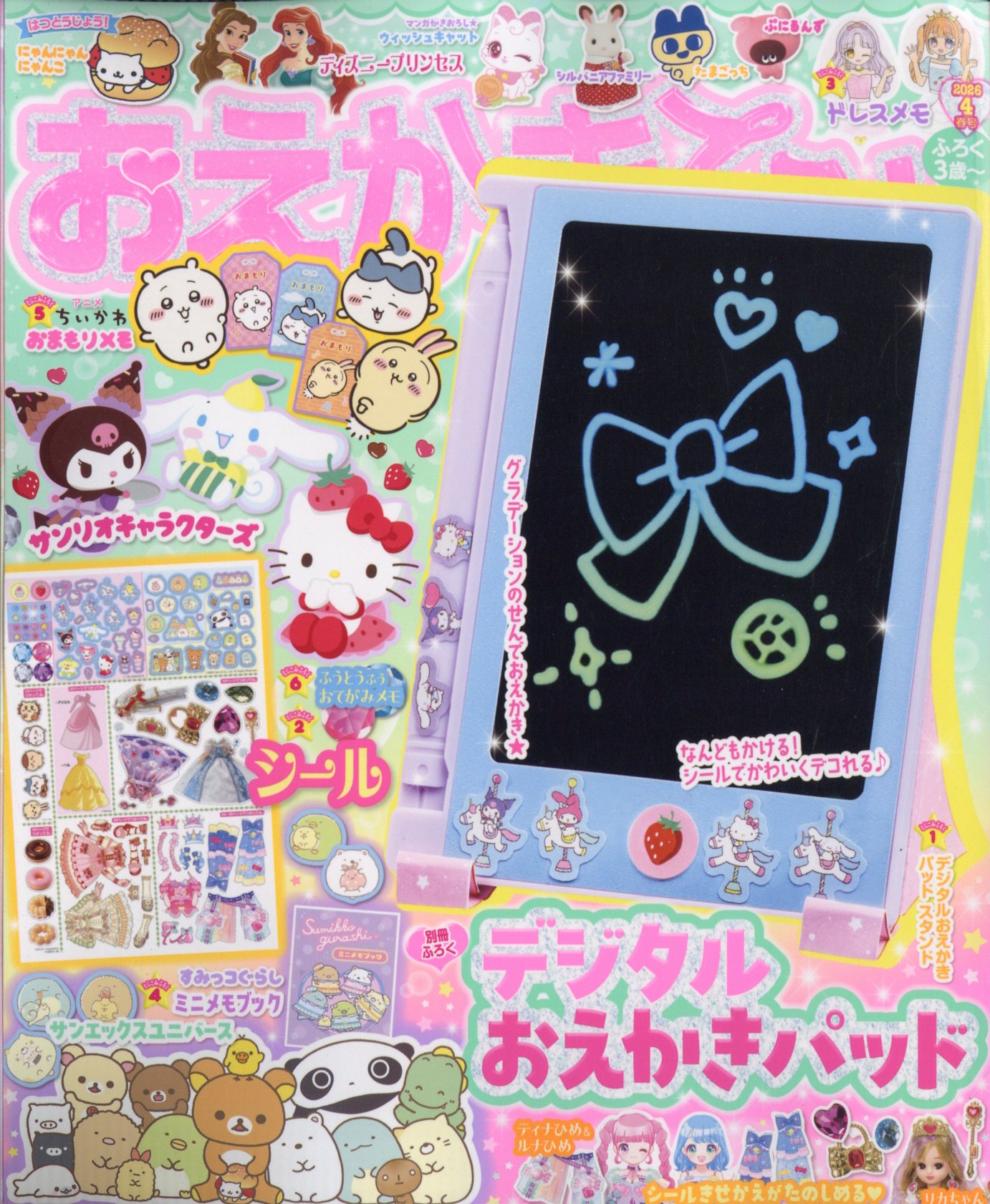 人気キャラクターといっしょに、おえかきやぬりえ、シールあそび、おりがみが楽しめる一冊。毎号、豪華なふろくをつけてお届け!本誌には、ふろく連動のお手紙&おまじない企画、おえかき、ぬりえ、シール遊び、まちがいさがし、めいろなど遊びがいっぱい
