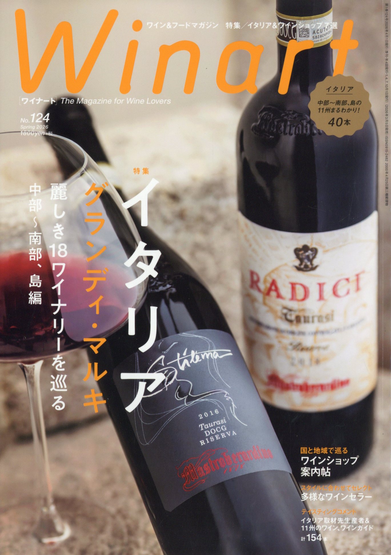 【巻頭特集】■イタリア 華麗なるグランディ・マルキの世界■──18ワイナリーを巡る、完結編──。イタリアを代表する名門ワイナリーが結集して設立された生産者協会【グランディ・マルキ】/ 世界的に高い評価を得ている造り手ばかり。前号から続いた生産者を巡る旅の後半は、トスカーナからスタート。そこから南下し、シチリアへ渡り、旅の終着地、サルデーニャへ。紹介する9生産者を通し、イタリアならではの豊かな多様性、ワインの魅力に迫ります。【第2特集】国、産地特化型の厳選ワインショップ7選。ほか多様なワインセラーやイタリアワインをご紹介!