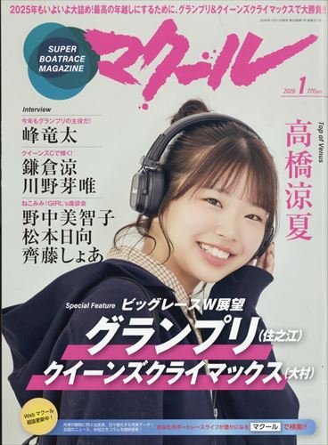 毎号旬のボートレーシングガールを取り上げる表紙・巻頭グラビアでは、島倉都選手が登場(予定・変更の可能性有り)。新潟県出身初の女性ボートレーサーの彼女は高校でカヌー部に所属。テレビ番組をきっかけにボートレーサーとなったいう彼女の「ここまで」や「これから」に迫ります。巻頭インタビューでは、出走数5017回中1着1803回、優勝は104回(25年11月19日現在)を誇る、No.1ボートレーサーの一人である峰竜太氏へのロングインタビューを敢行。今年も大活躍の峰選手の一語一句に大注目です。またレースプレビューでは大村クイーンズクライマックスを深堀り!今号もボートレースファン必見の内容を盛りだくさんでお贈りします。(特集内容は予告なく変更となる場合があります。)