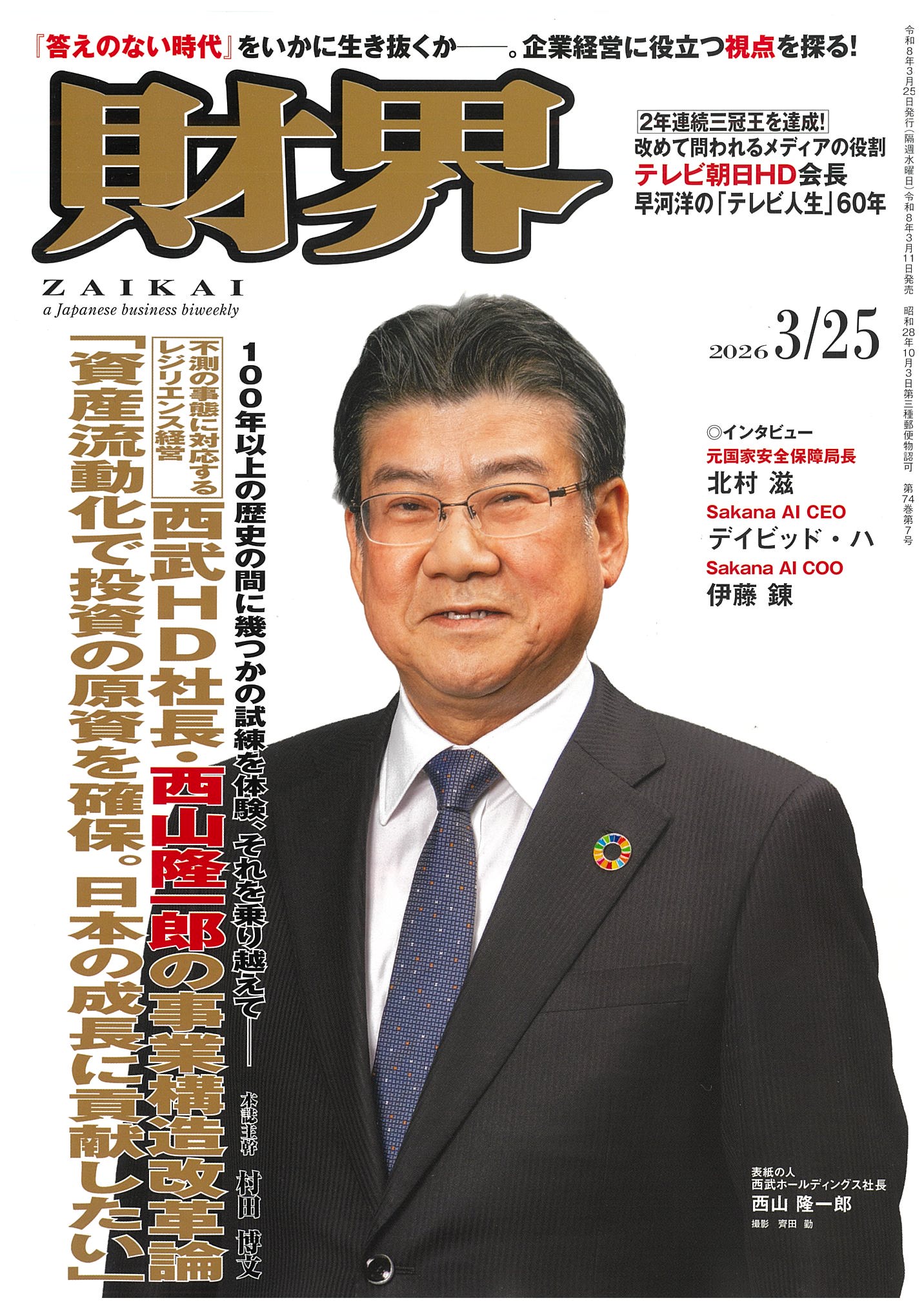 【トップレポート・インタビュー】西武ホールディングス社長兼COO・西山隆一郎 【インタビュー】キタムラエコノミックセキュリティCEO・北村滋 【インタビュー】アパグループ社長・元谷一志 【インタビュー】SakanaAICEO・デイビッド・ハ、COO・伊藤錬 その他多数