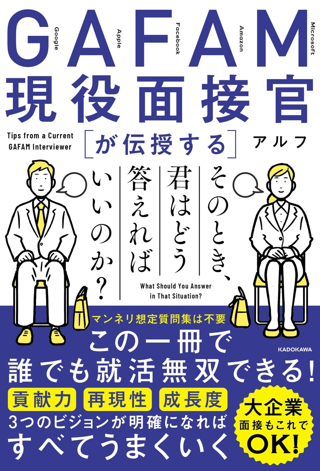 GAFAMの現役面接官である著者が、大企業が求める人材や心動かされる回答を導くためのノウハウを伝授。
