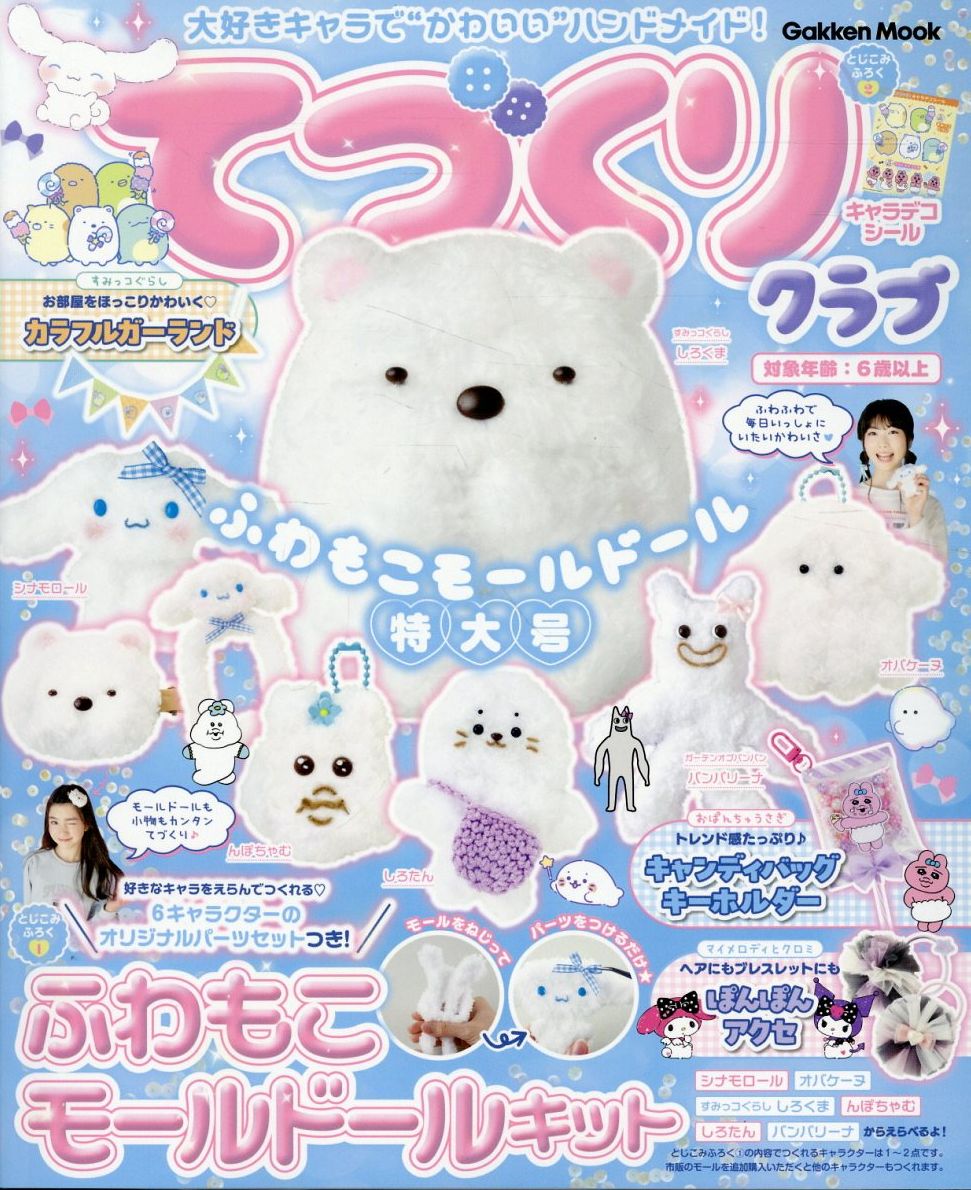 かんたん! かわいい! おしゃれ!なキャラクターアイテムをてづくりできるムック本。ふろくの「ふわもこモールドールキット」は、大人気の6キャラクターやトレカケース、ヘアクリップのなかから、つくりたいものを選んで楽しくてづくりできます。