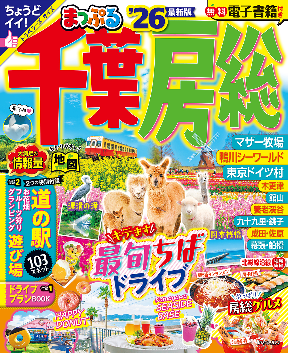 巻頭特集「キテます!最旬ちばサーチ」では、撮りたい!絶景スポット(岡本桟橋、濃溝の滝など)、海鮮ものや勝浦タンタンメンなど必食!房総グルメ、最注目のスポット鴨川や勝浦のほか、かわいい動物たちや旅の目的である道の駅など、今こそ行くべきスポットを掲載。巻頭付録は房総ドライブに欠かせない「ドライブプラン&MAP」「道の駅&遊び場BOOK」。房総半島の自然たっぷりな海や里へ何度でも出かけたくなる一冊です。