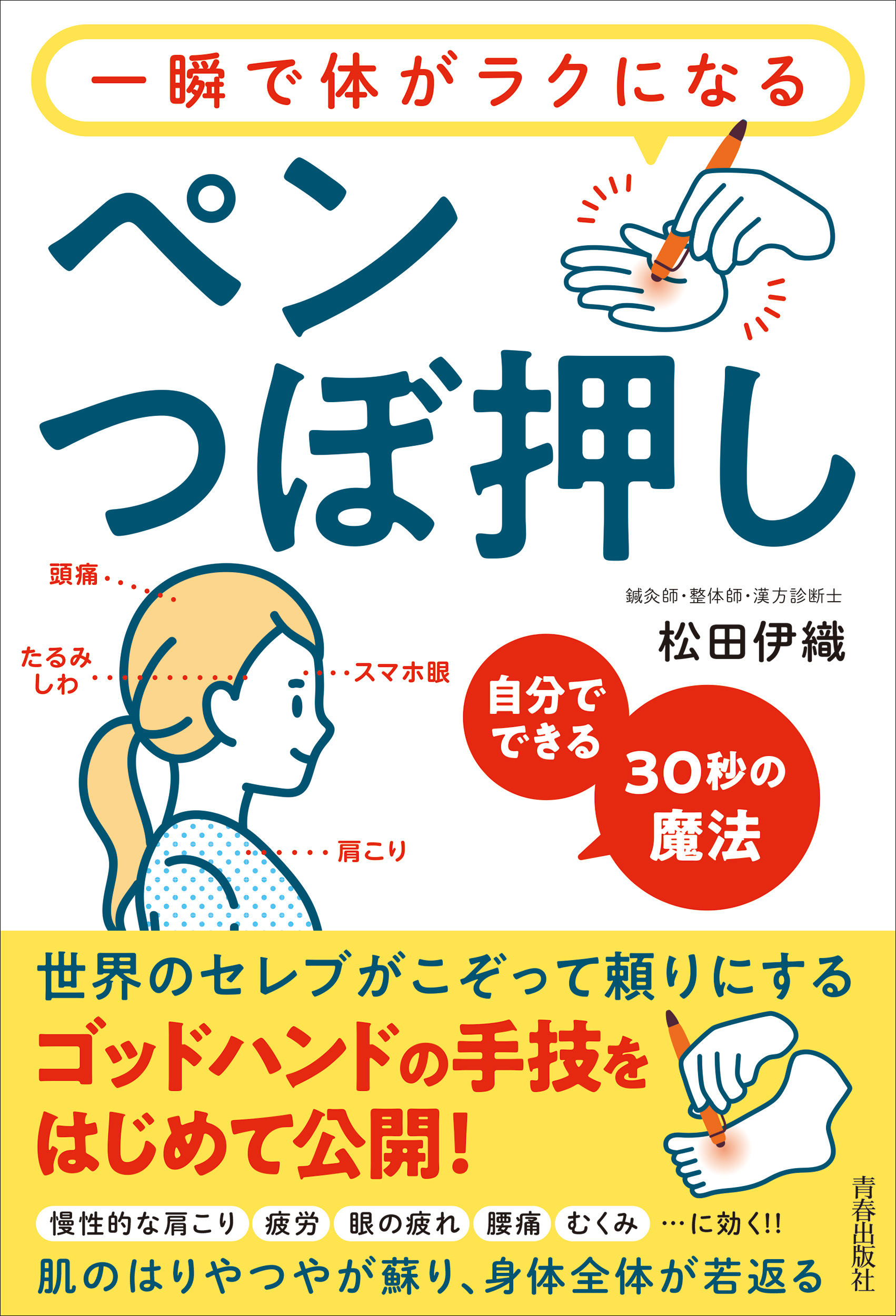本書では、このような課題を解決するため、鍼灸師が実際に活用している技法を「たった30秒」「その場で症状が改善」「続けやすい」ペンツボ押しメソッドをまとめて解説。