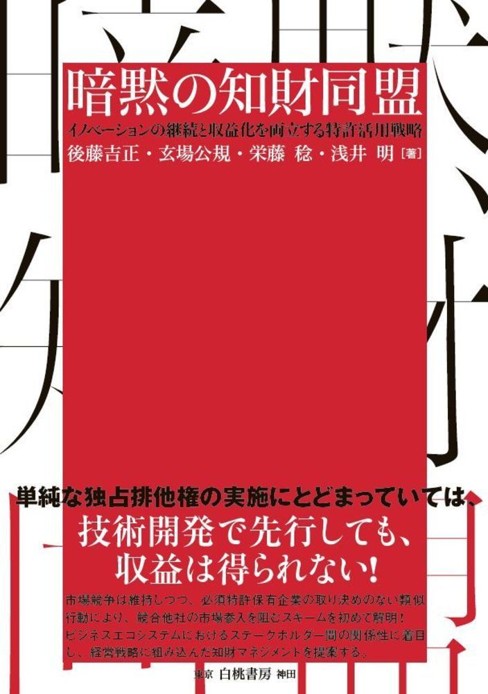 すなわち必須特許保有企業が協調し(これを本書では「暗黙の知財同盟」と呼ぶ)、競合他社の参入を阻止するスキームを初めて提示。これによって、企業がイノベーションへの歩みを止めることなく、創出されたイノベーションを確実に収益化する構造を、インクジェットプリンタや白色 LED などの具体的な事例で、詳細に解説していく。