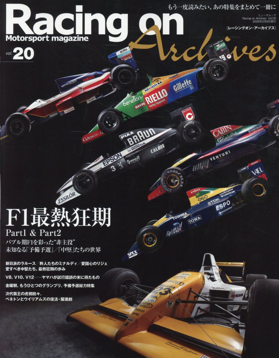 ついに20冊目となるアーカイブスも、いつまで出せるかわからないので「出し惜しみ」せず、実売を確保するべく人気企画で勝負に出ます。今回は本誌の年イチ高人気特集である「F1最熱狂期」(1989?93年)の第1弾と第2弾の号を合わせて1冊にします。Part1は89年のマニアックな視点、金曜早朝のサバイバルグランプリこと「予備予選」を中心とした構成。ラルースやミナルディにヴェンチュリLC92撮り下ろしや中谷明彦関連の企画を収録するほか亜久里やカペリのインタビューに加えて中嶋悟が川井一仁とともにバブル期を回想する対談も。一方のPart2はベネトンやティレル、フランス人若手ドライバー「ABCD」紹介、ジョニー・ハーバート&ジョバンナ・アマティインタビューのほかB189のマシンギャラリーも収録。さらにレイトンハウスCG901やフォメットGR02、ロータス107などカッコいい個性派たちも網羅。どちらも初回刊行時に高人気を博した号であり、そこから10年経つため再度の実売獲得に期待できます。