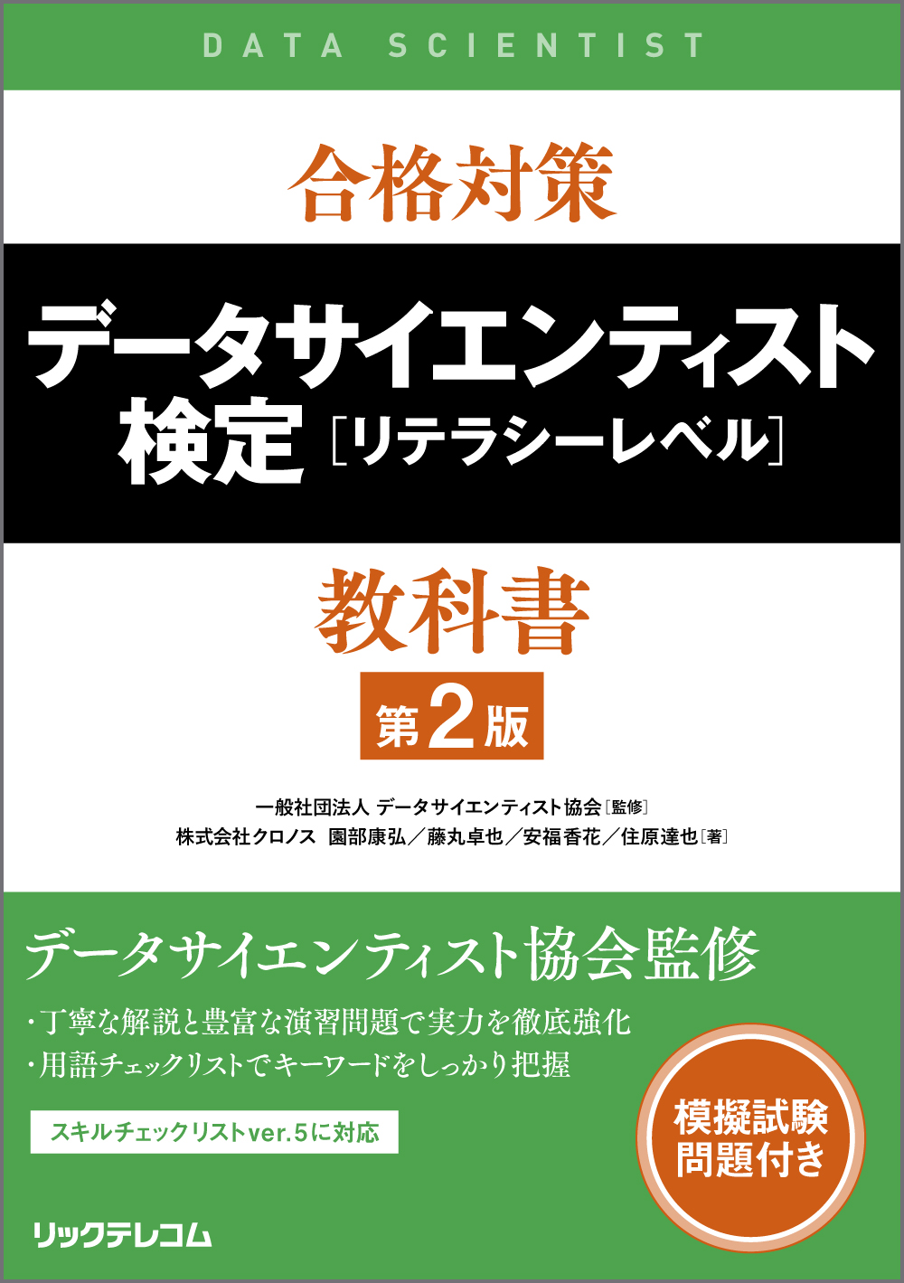 「データサイエンティスト検定 リテラシーレベル」の対策書です。最新の試験範囲(スキルチェックリストver.5)に対応し、初版の内容をアップデートしました。