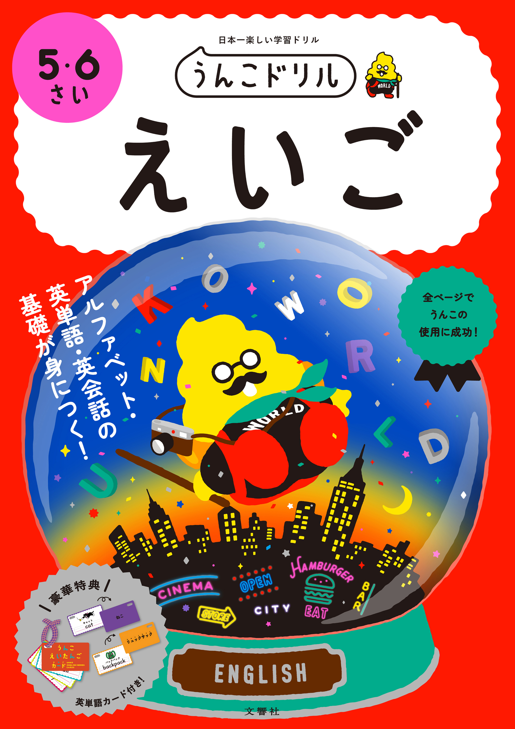 大人気「うんこドリル」シリーズに新たに5・6さい向け「えいご」ドリルが登場!楽しいうんこイラストやゲームと共に、アルファベット・英単語・英会話の基礎を学習することができます!英語に興味を持ったお子さまの総合入門ドリルとして最適です!