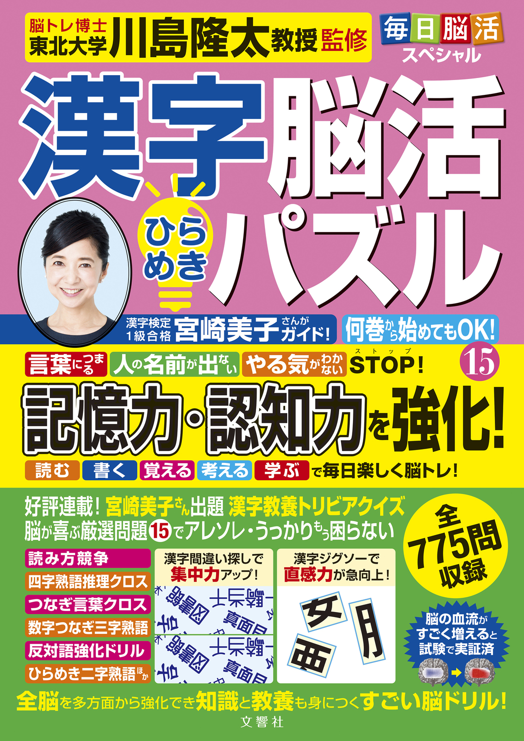 ご好評に応え待望の毎月刊行化!パズル誌の中でも特に人気の高い漢字系の問題に特化した「毎日脳活シリーズ」第15巻。漢字の部首や書き順を問うもの、熟語を問うもの、見るだけでスッと解けるもの、じっくり時間をかけて徐々に答えを導き出すものなど、漢字好きにはたまらない多彩な問題を網羅。また、巻頭特集では漢字検定1級に合格した漢字好きの女優、宮崎美子さんのインタビュー及び宮崎さん出題の楽しくて頭を使う漢字問題を収録。