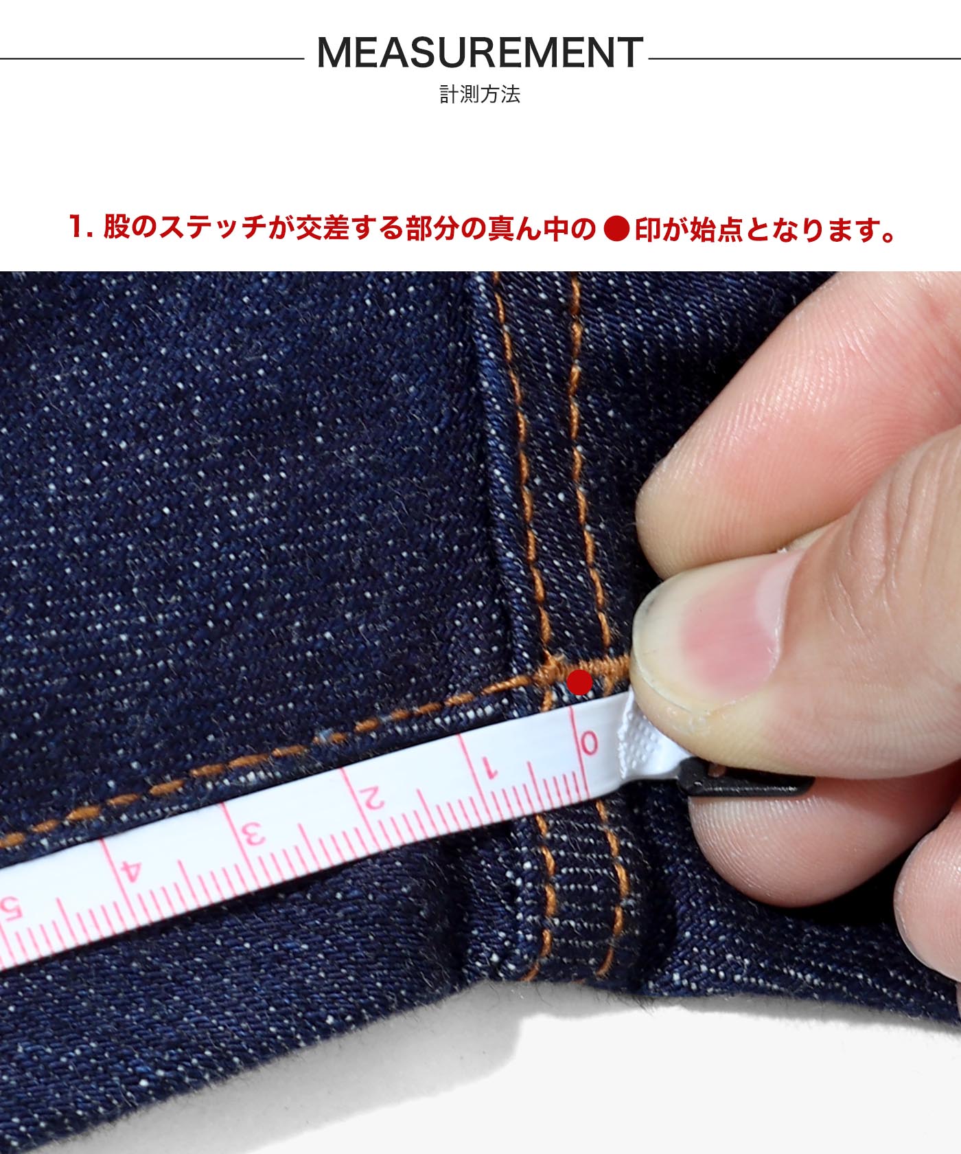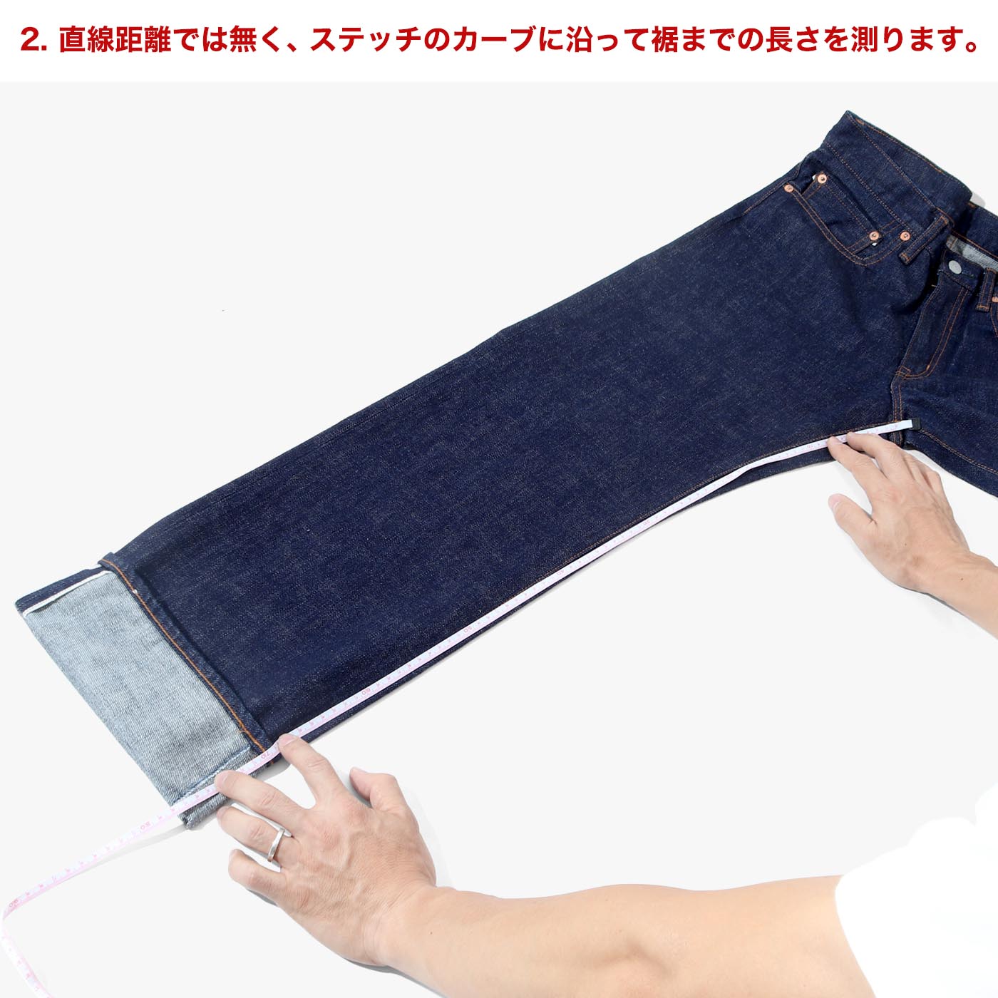 ・リジット(未洗い)の商品はファーストウォッシュ時に縮みが発生しますので、縮みを考慮して股下寸法をご指定ください。