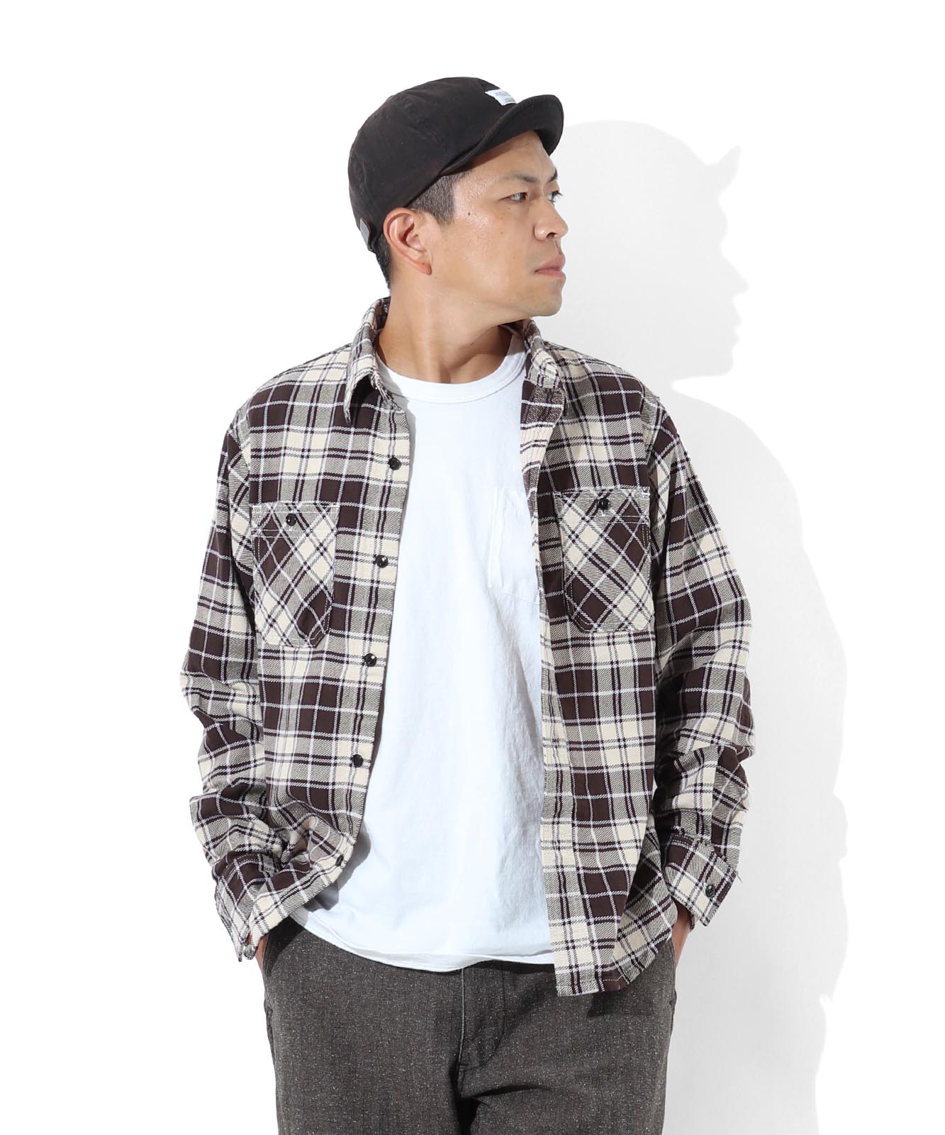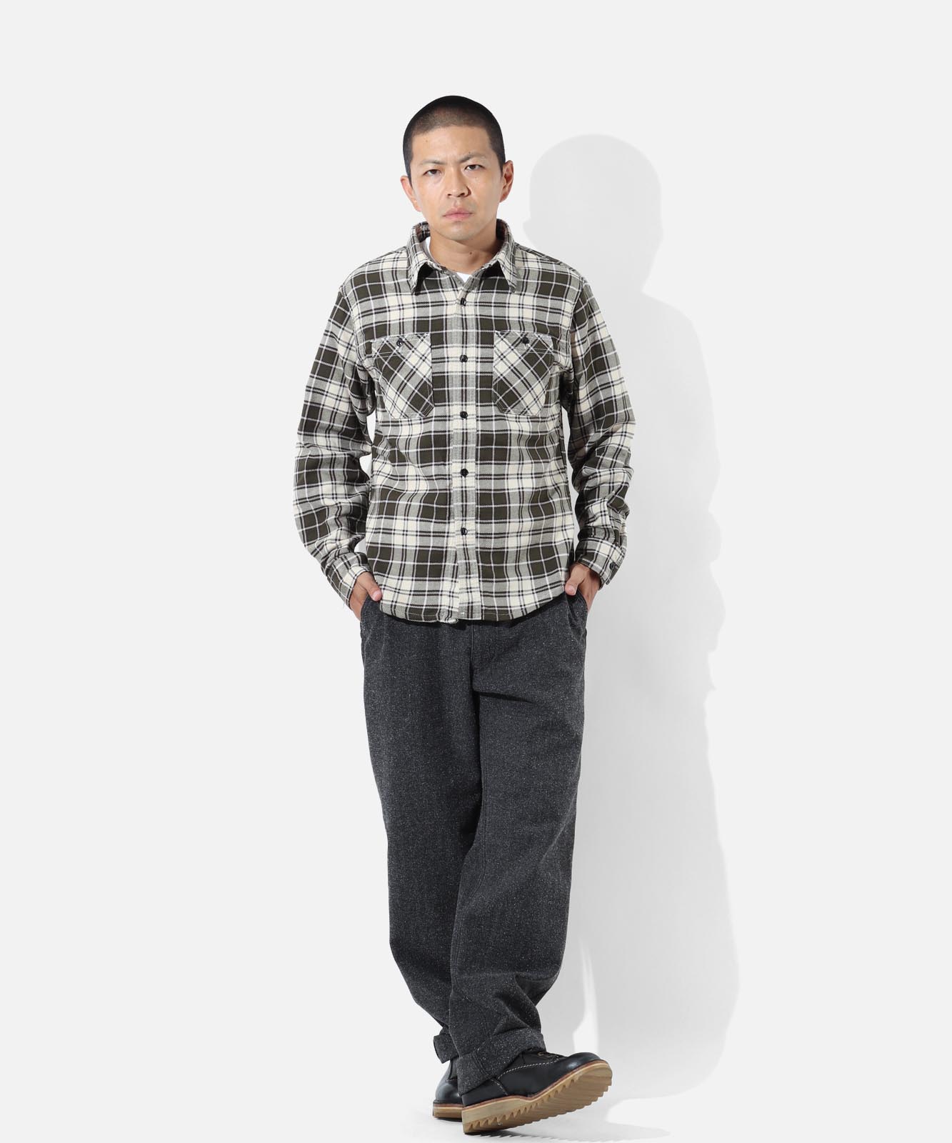落ち着いた色合いと上品な佇まいが魅力のクラシックチェックシャツ。トラディショナルなチェック柄をベースに、カジュアルからきれいめスタイルまで幅広く対応できる一着です。程よいリラックス感のあるシルエットで、ジャケットのインナーにも相性抜群。季節を問わず活躍する、ワードローブに欠かせない定番シャツです。