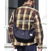 国産のデニム&ヒッコリー生地を使用した三日月型のショルダーバッグ。