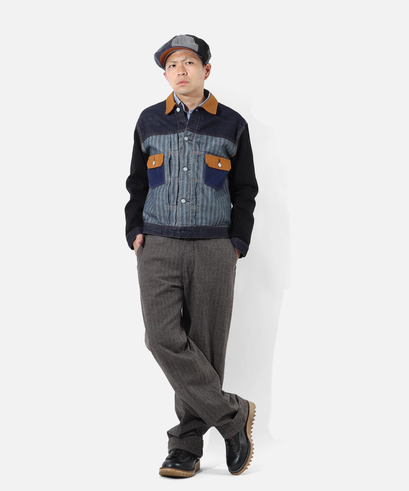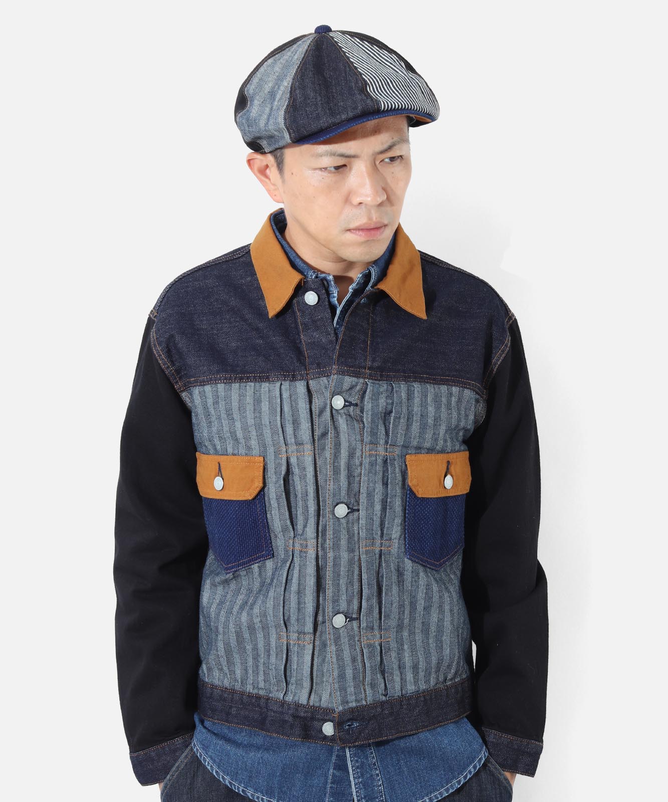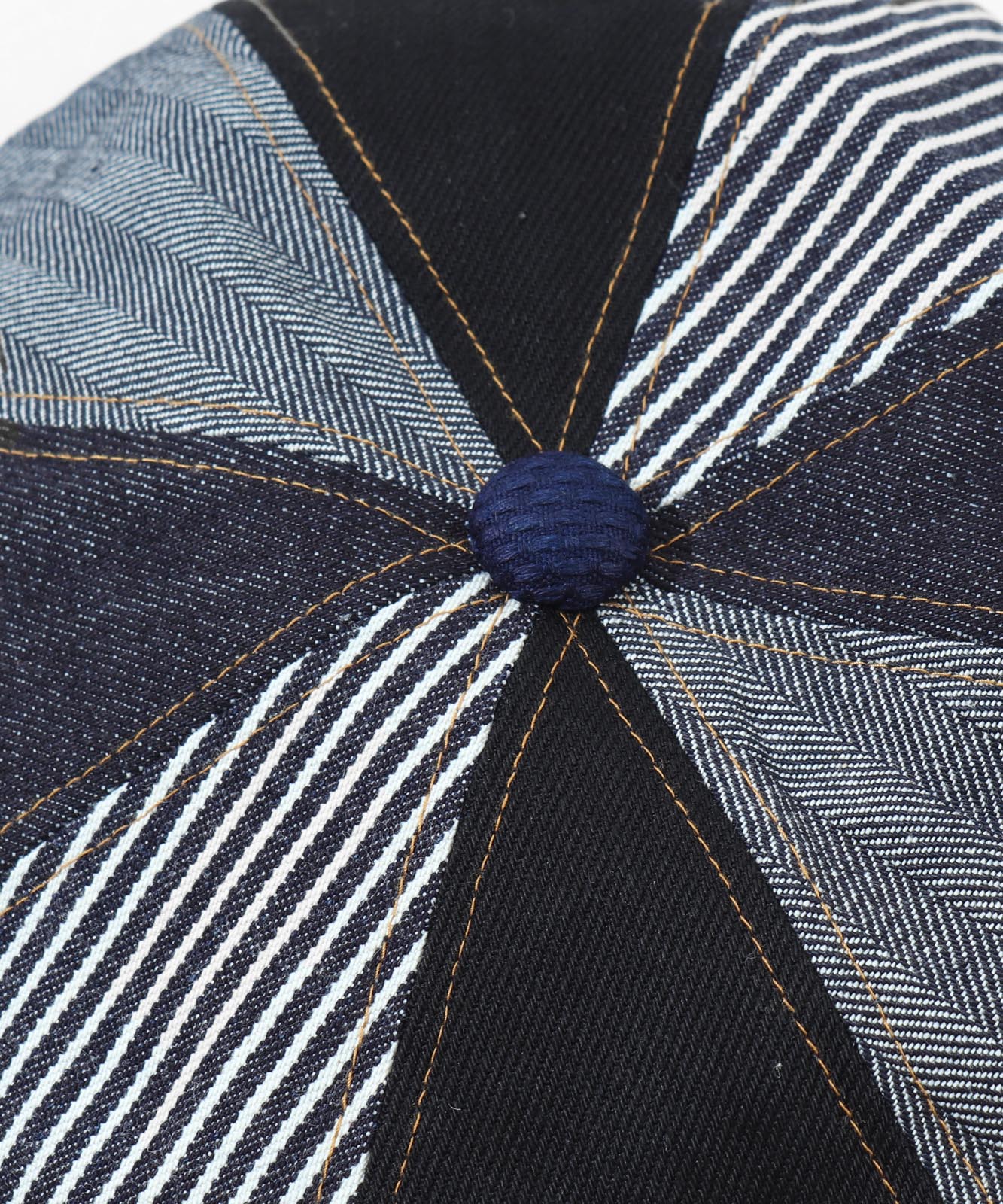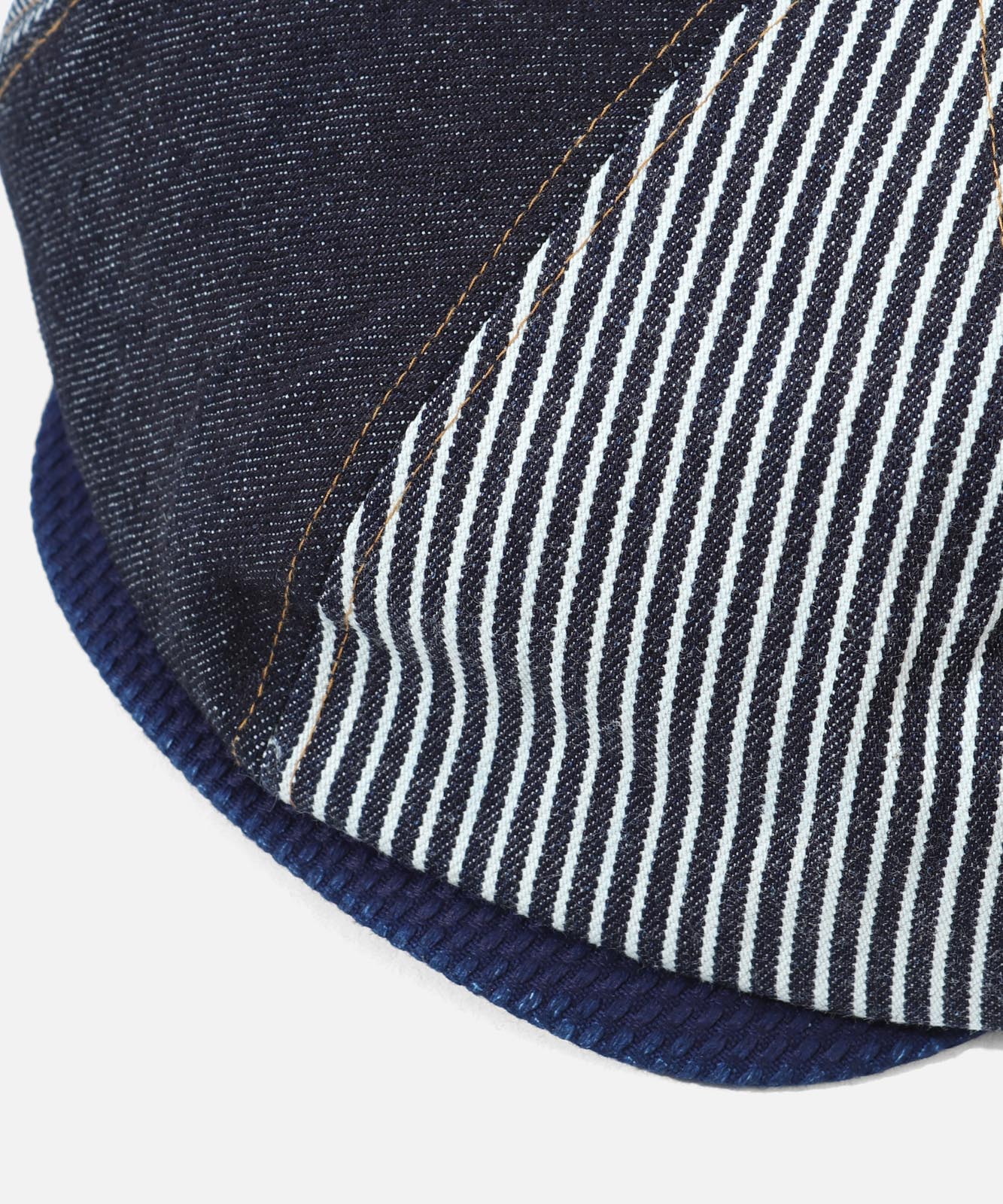 個性と職人技が融合した、唯一無二のキャスケット。「ダック」「ヘリンボーン」「デニム」「ヒッコリー」「刺し子」ワークウェアを象徴する5つの生地を組み合わせ、素材ごとの風合いや経年変化を1つのアイテムで楽しめる特別仕様です。