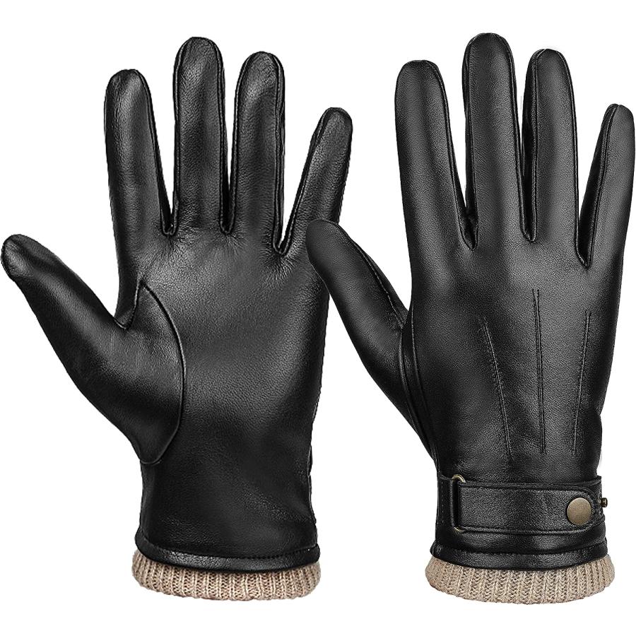 手袋 メンズ 防寒 スマホ対応 本革(山羊革) 裏起毛(ウール) 防風 撥水 紳士 冬 スブラック/ブラウン