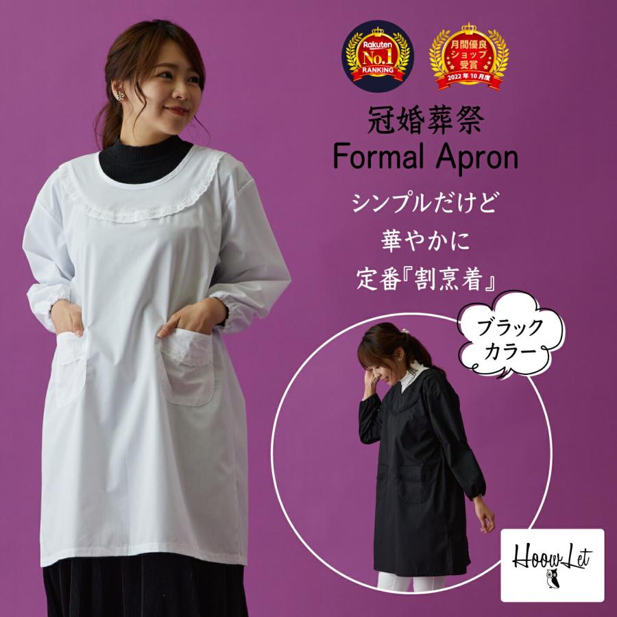 エプロン 冠婚葬祭 フォーマル 割烹着 洋カッポー レース付き洋装用 割烹着 ロング丈 かわいい おしゃれ 無地 かっぽう着 炊事 大掃除 レース 葬式