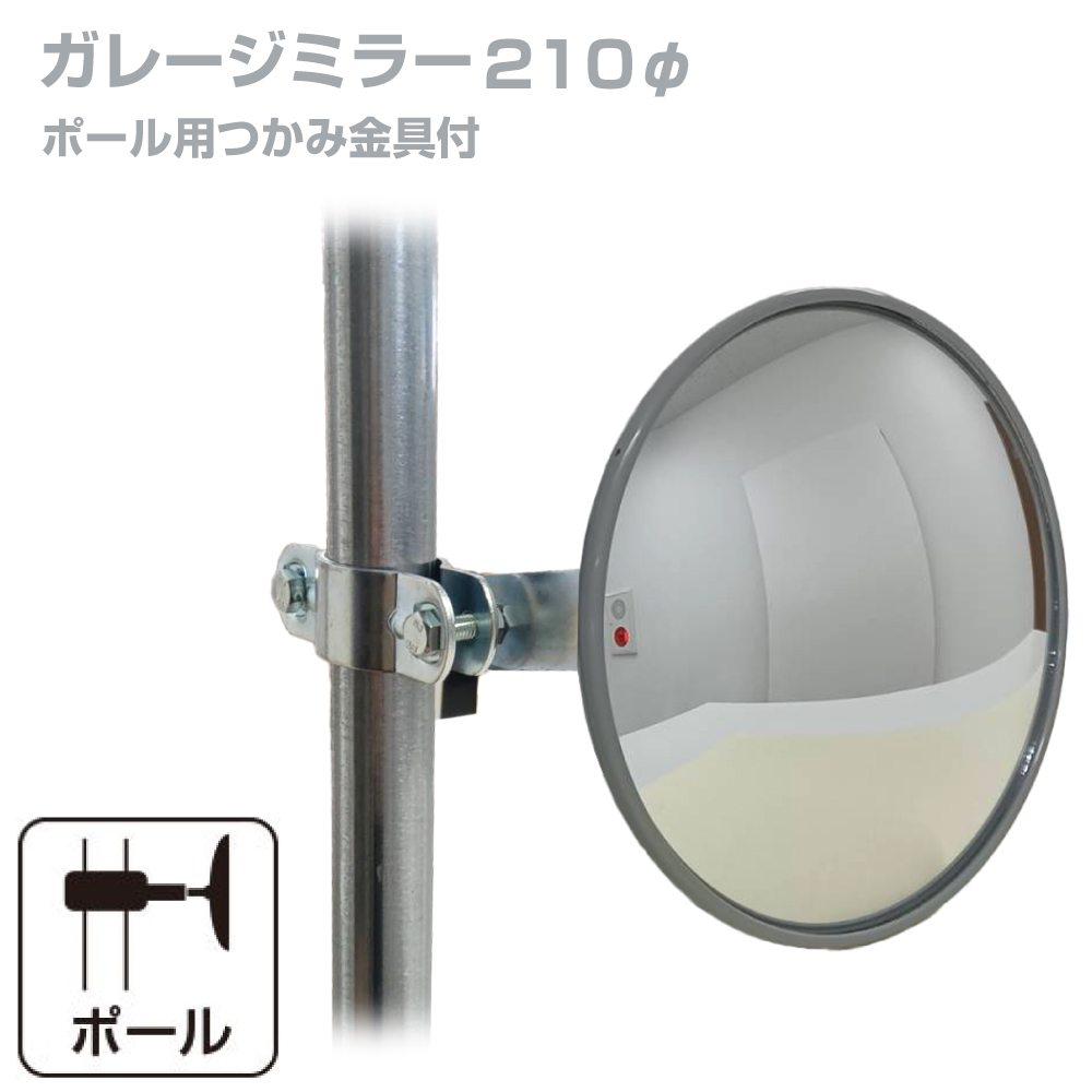 ガレージミラー 家庭用 丸型 210φ ポール 取付金具付き ガラス製ミラー カーブミラー 駐車場ミラー 安全確保 安全確認 車庫入れ 防犯ミラー 日本製 yh015