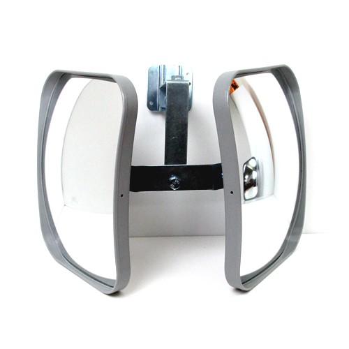 ガレージミラー 2面鏡タイプ 家庭用 グレー 角型 240×190mm 取付金具付き ガラス製ミラー 駐車場 車庫 ツイン 家庭用 カーブミラー 防犯対策 屋外 日本製 yh107