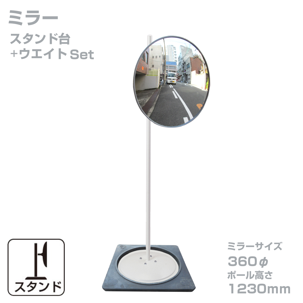 ガレージミラー 家庭用 丸型 360φ 直径 約30cm スタンド台セット 高1230mm ウェイト付き 重り 転倒防止 取付金具付 ガラス製ミラー日本製 yh1428