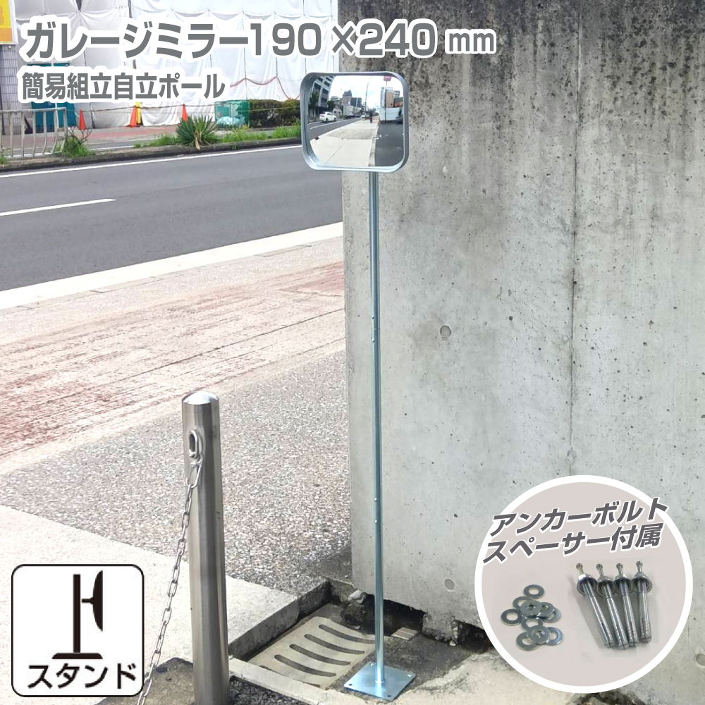 ガレージミラー 小型 家庭用 角型 190×240mm グレー 簡易 自立式 自立型 スタンド 支柱 ポール アンカー 付属 高さ1210mm 径19φ 取付金具付 日本製 yh1509