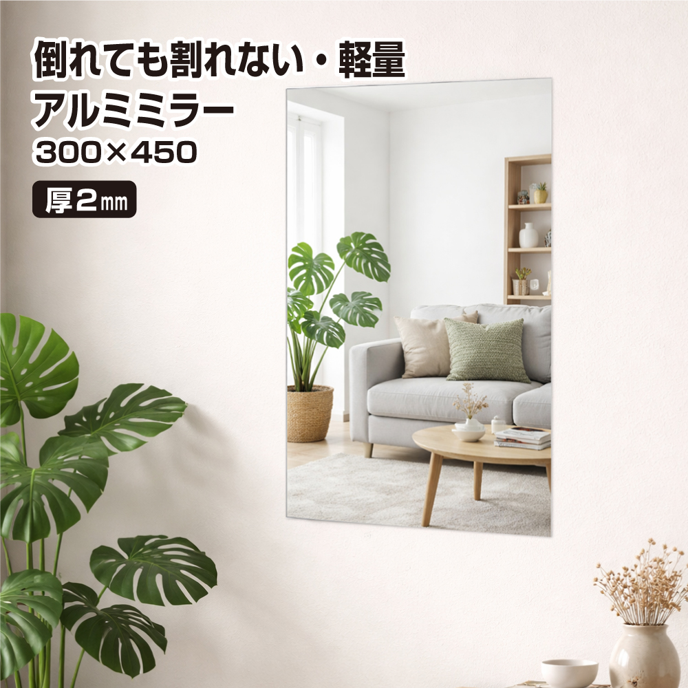 軽量 割れない鏡 厚み2mm 300×450mm アルミミラー 平面 姿見 貼る鏡 ノンフレーム 枠なし シンプル 姿見 省スペース ウォールミラー枠レス 貼付 爆買 yh1528